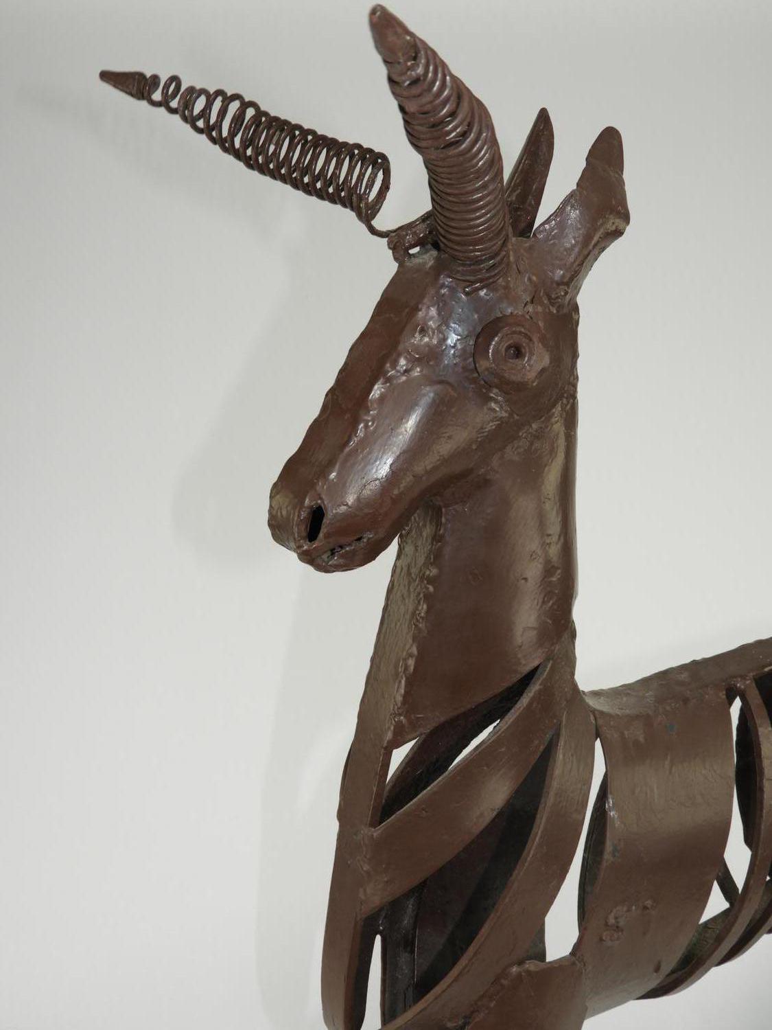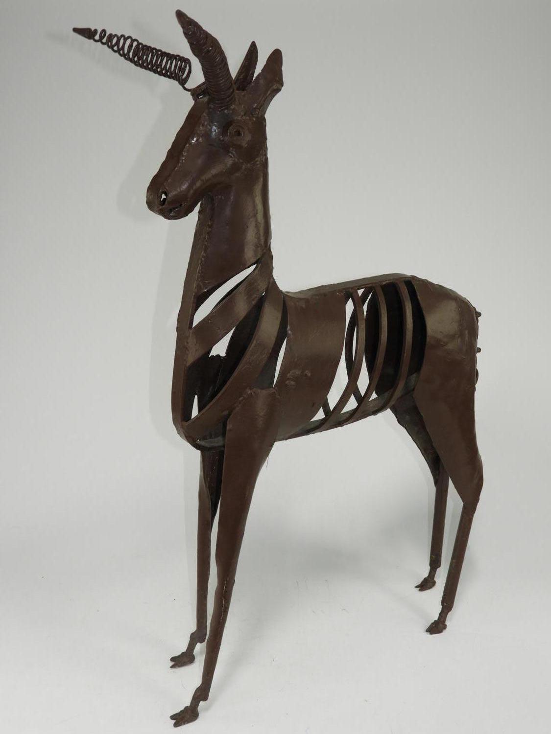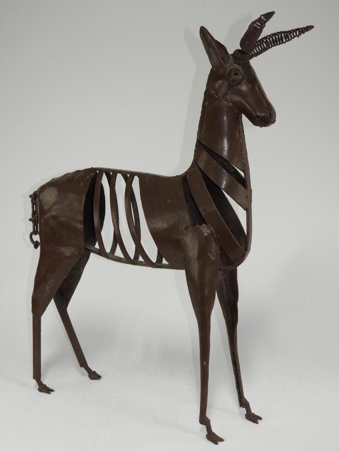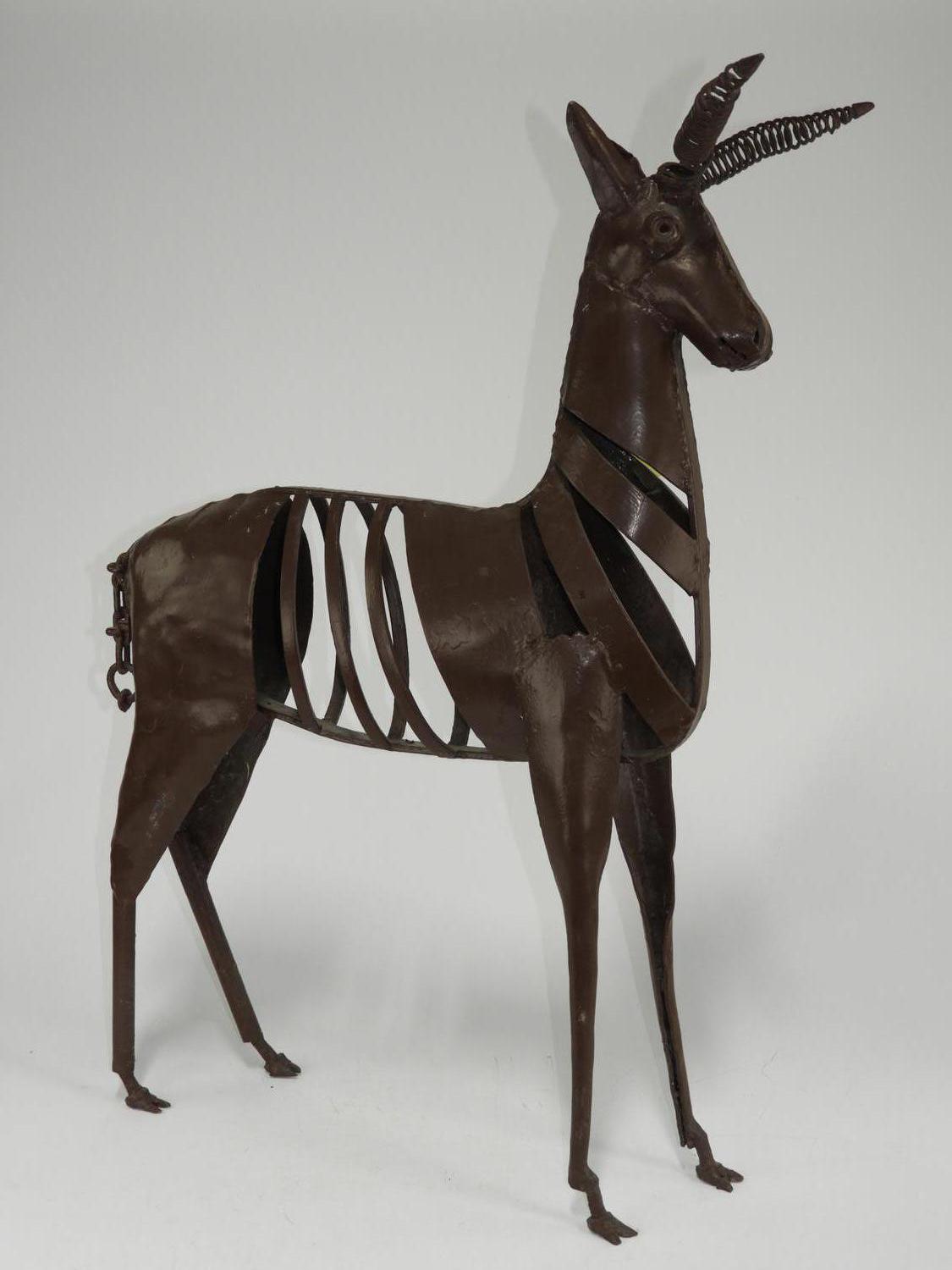 ashbell, unsigned, welded steel with bronze finish, 37" x 30" x 13", "gazelle"