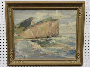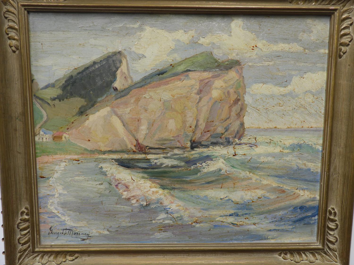 georgette morency, oil on board, 16" x 20", "shoreline scene"