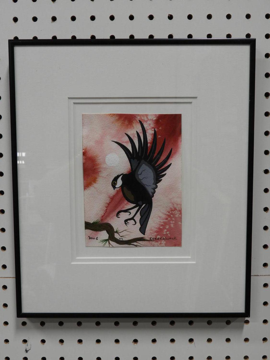 doug kakekagagumick, d. 2004, acrylic, 6 3/4" x 5", "hawk"
