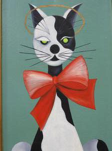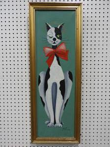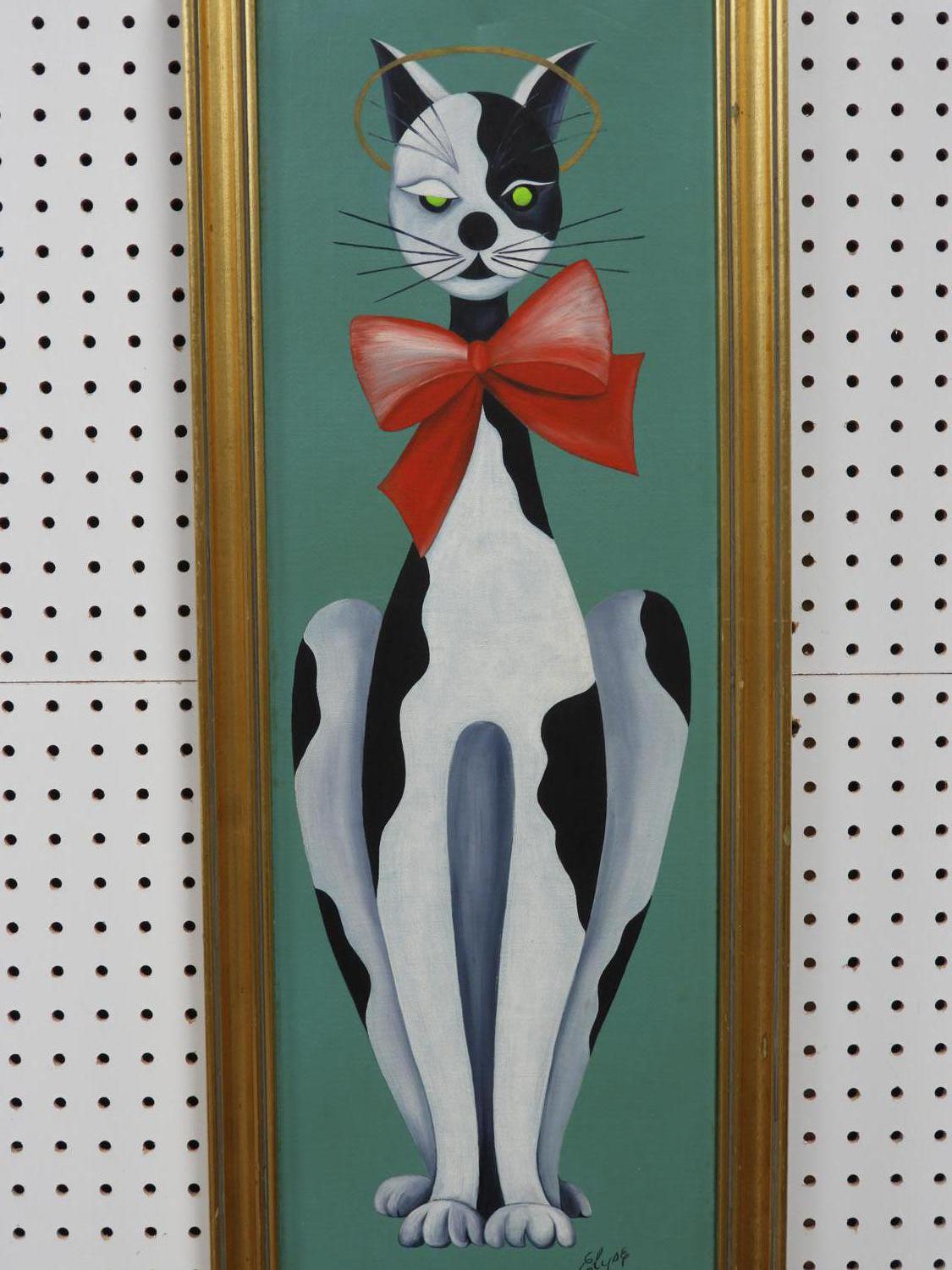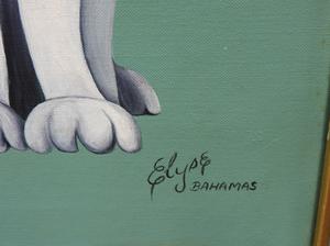 signed elyse bahamas, acrylic on canvas, 32" x 10", "angel cut"