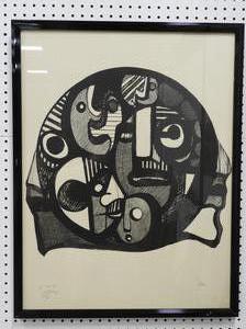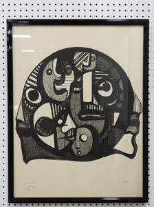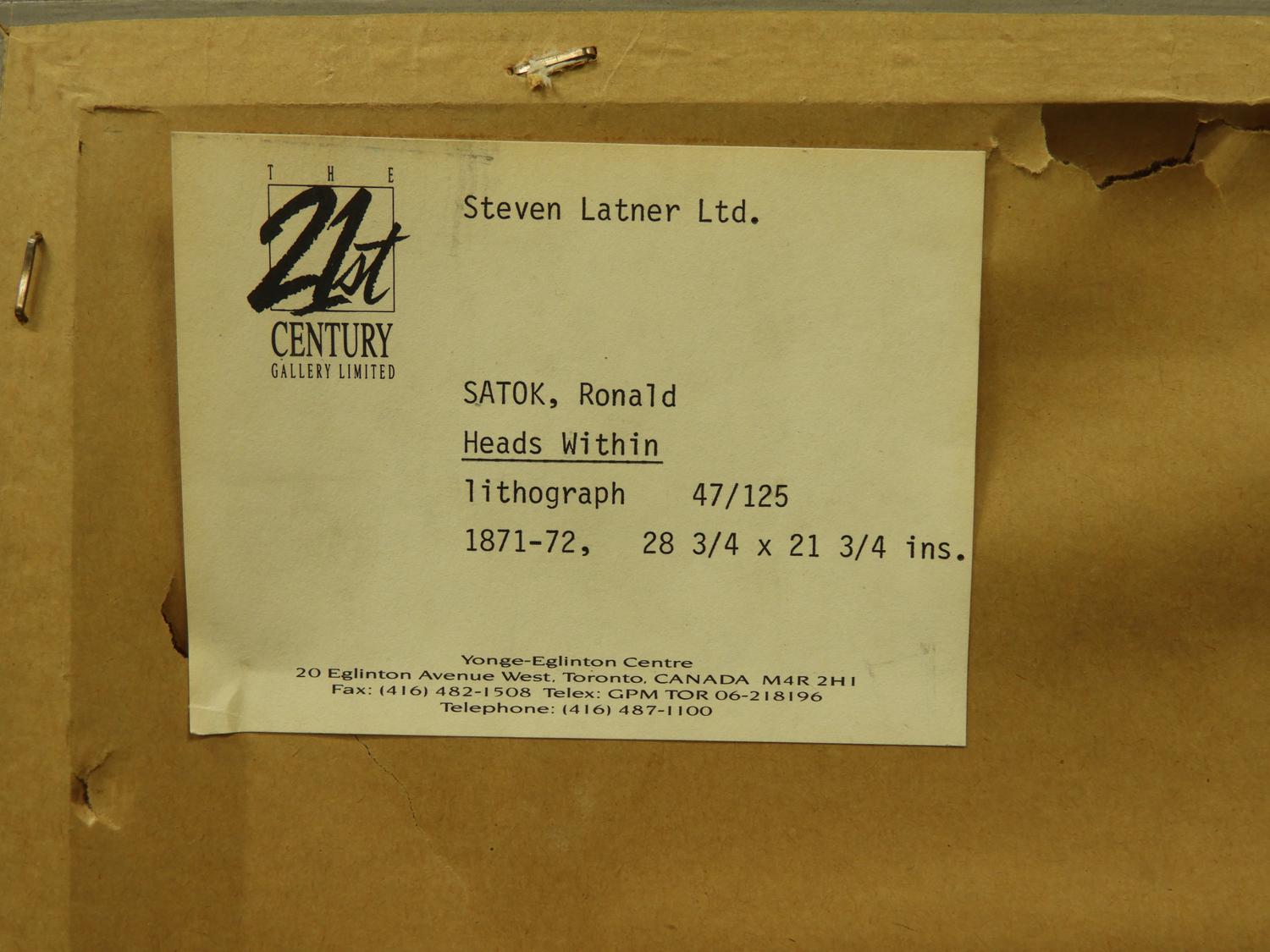 ronald satok (1932-2018), d. 1974, lithograph in colors, 47/125, 29" x 22", "heads within"