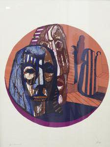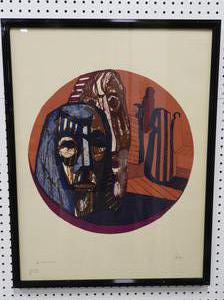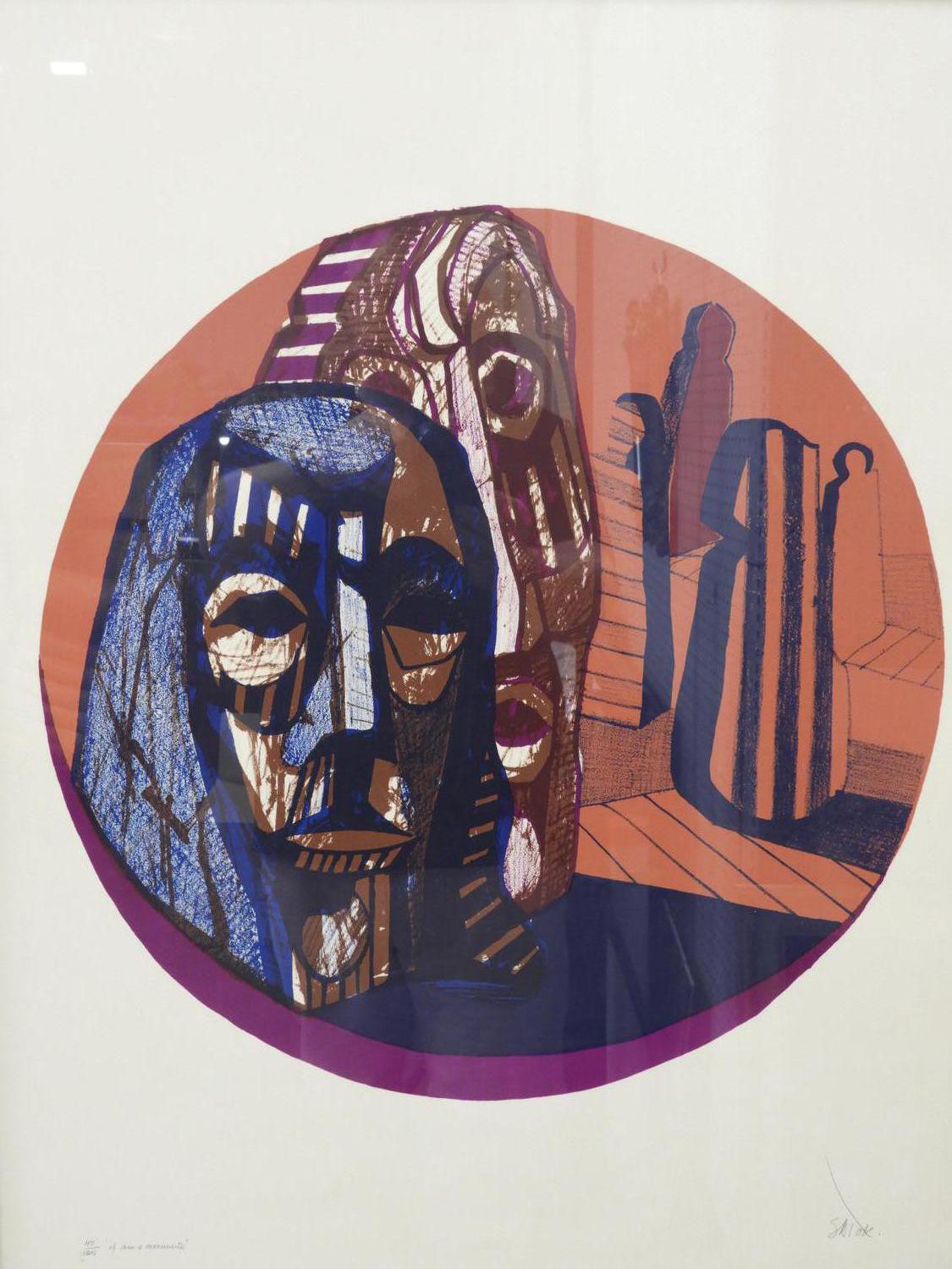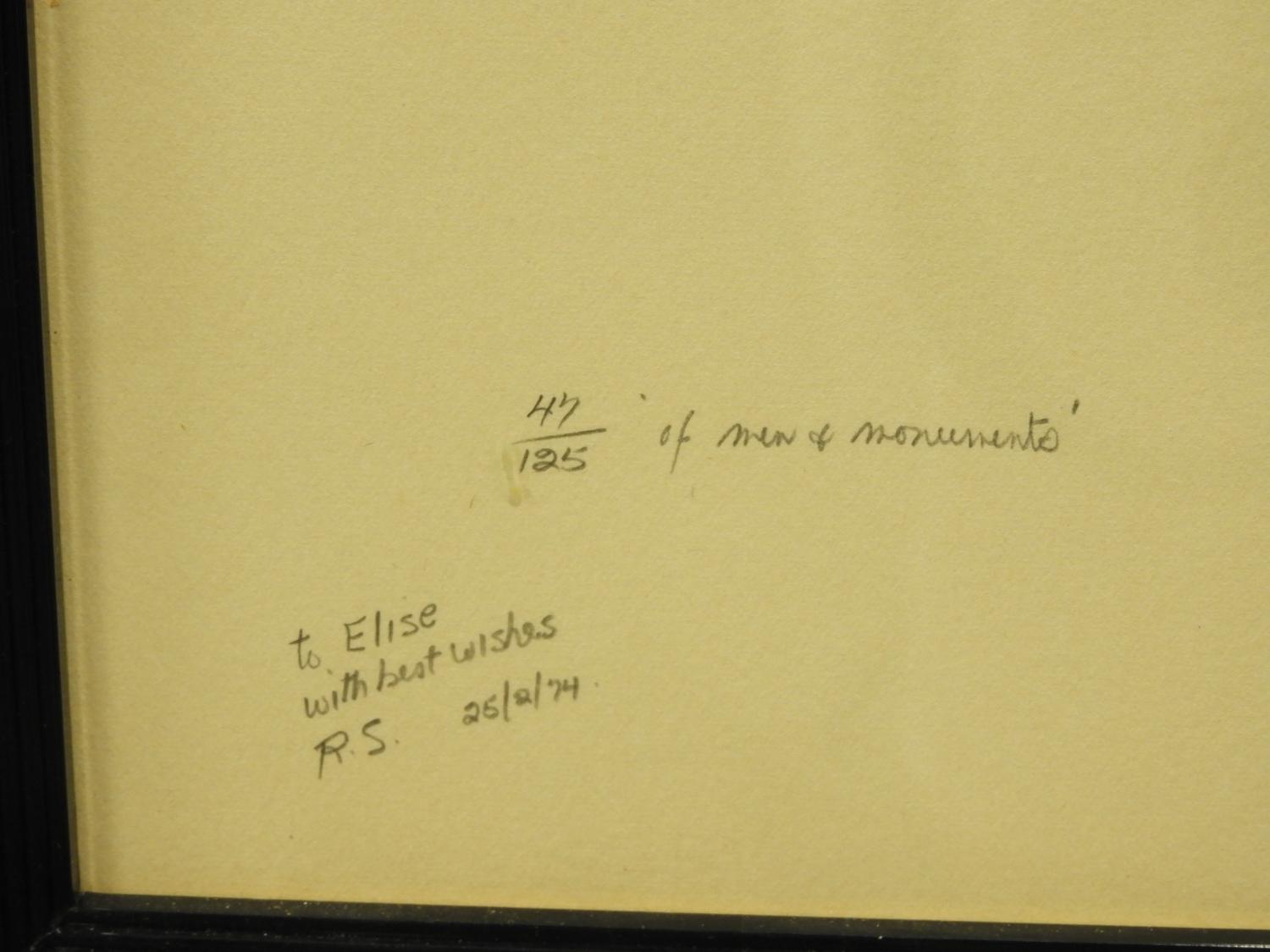 ronald satok (1932-2018), d.1974, lithograph in colours, 47/125, 28" x 21", "of men and monuments"