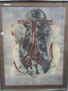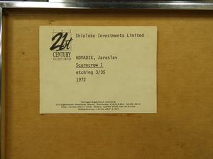 jaroslav hovadik, (1935-2011), . 1972, etching in colors, 2/35, 24 1/2" x 19", "scarecrow i"