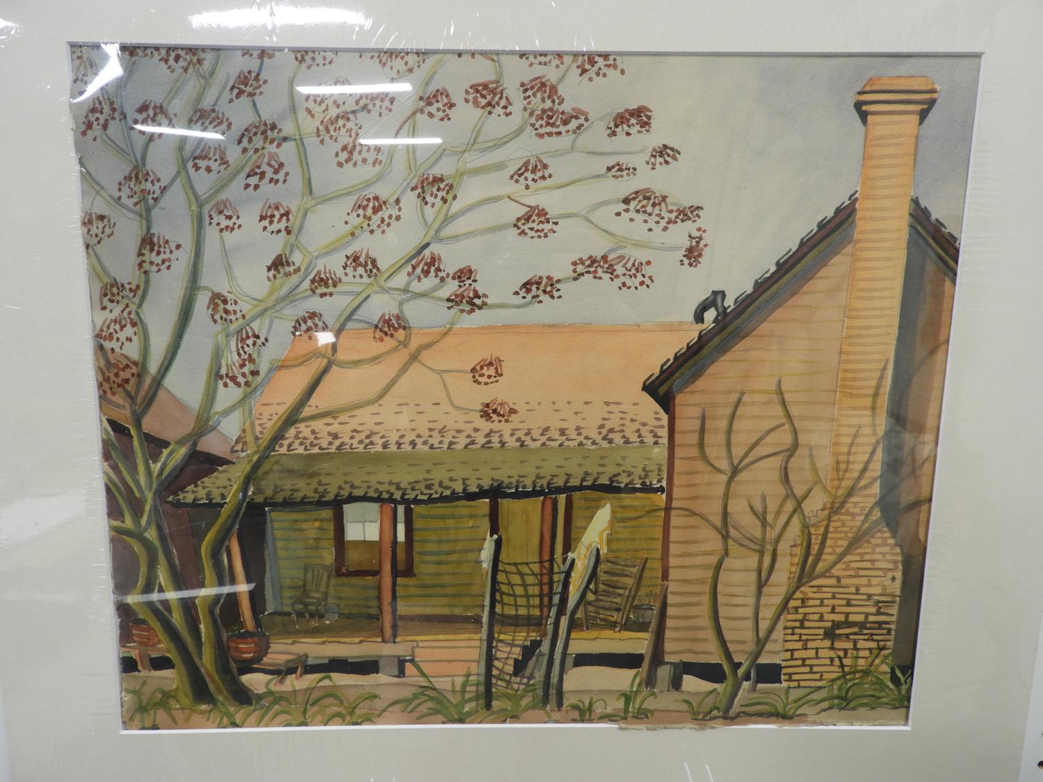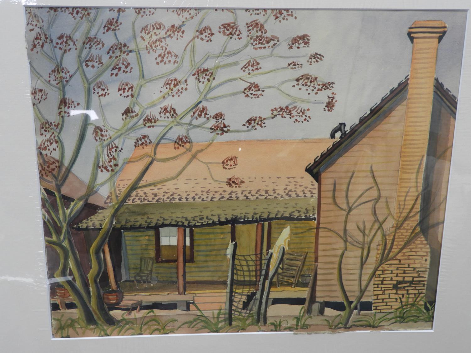 isabel grace mclaughlin(1903-2002), watercolour, 17 1/2" x 21 1/2", "house in summer", bears estate stamp