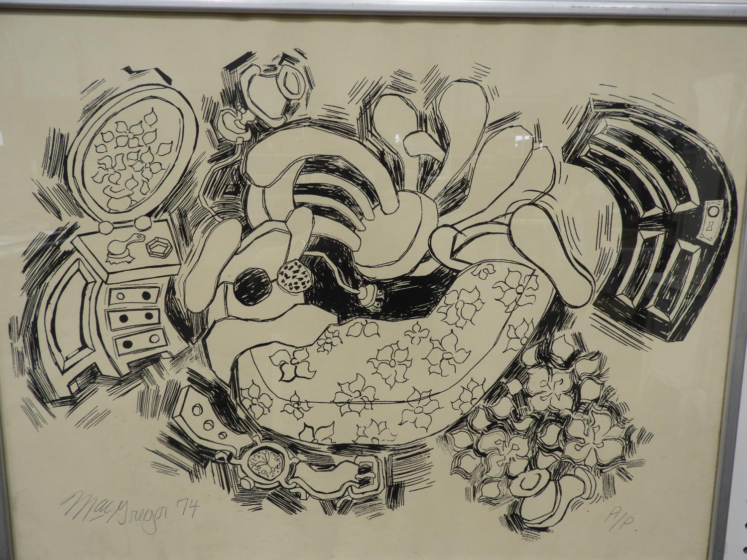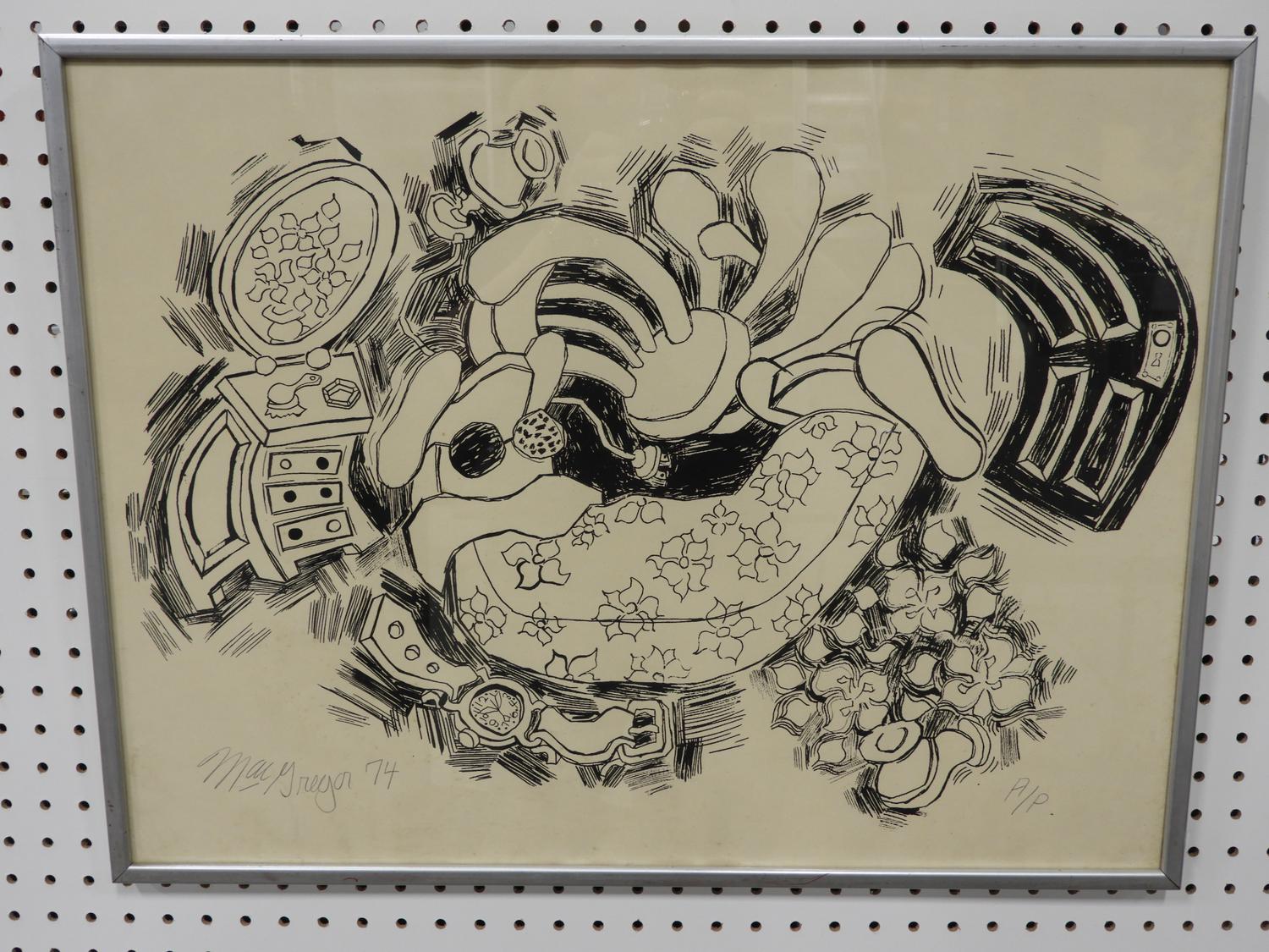 john macgregor, d.1974, artist proof print, 25 1/4" x 14 1/4", "black and white skewed room"