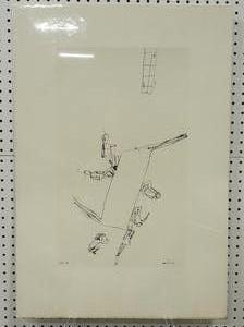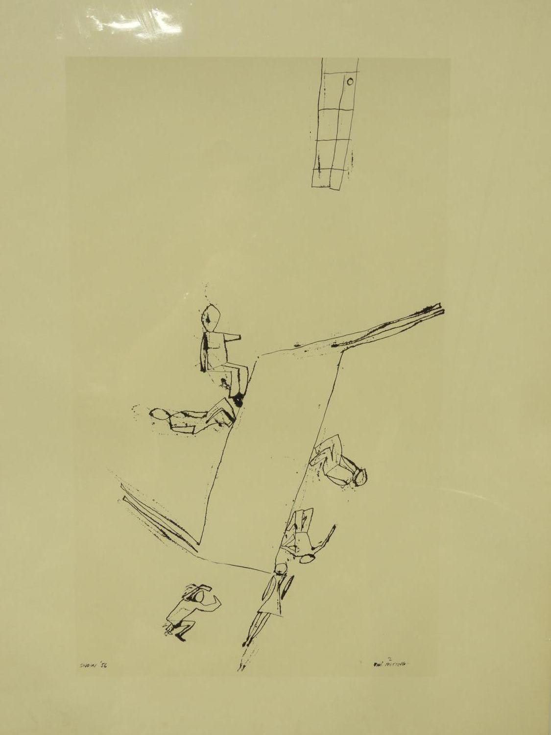 micheal snow(b. 1929),d. 1956, lithograph, 31 1/2" x 21 1/2", "the meeting"