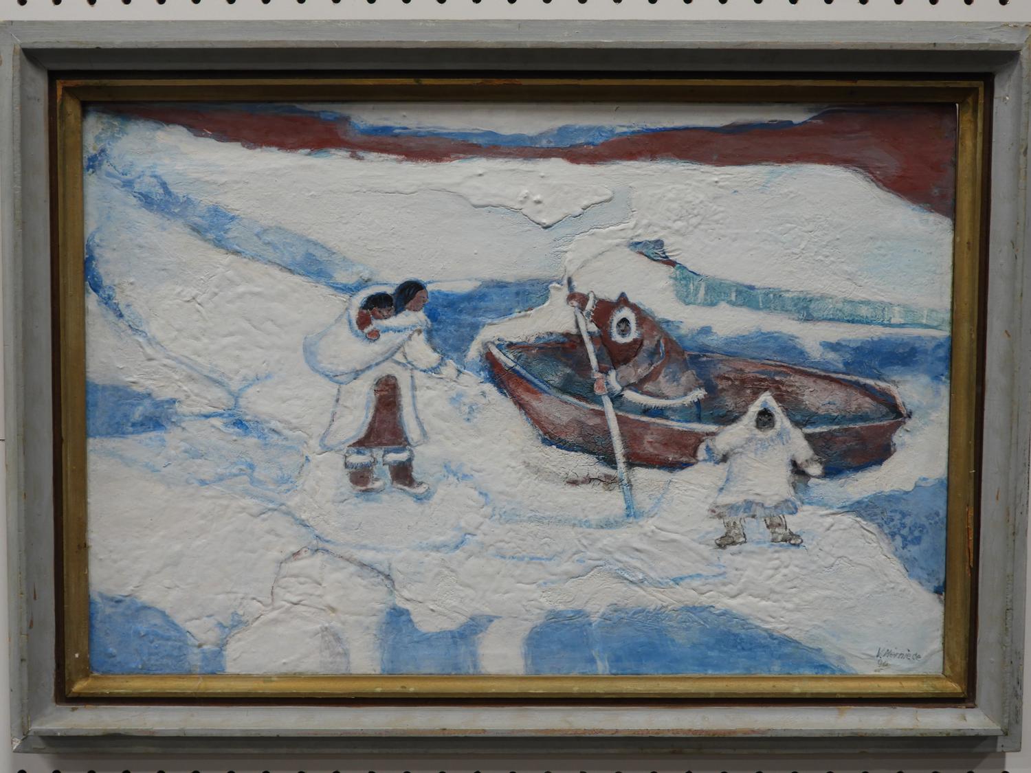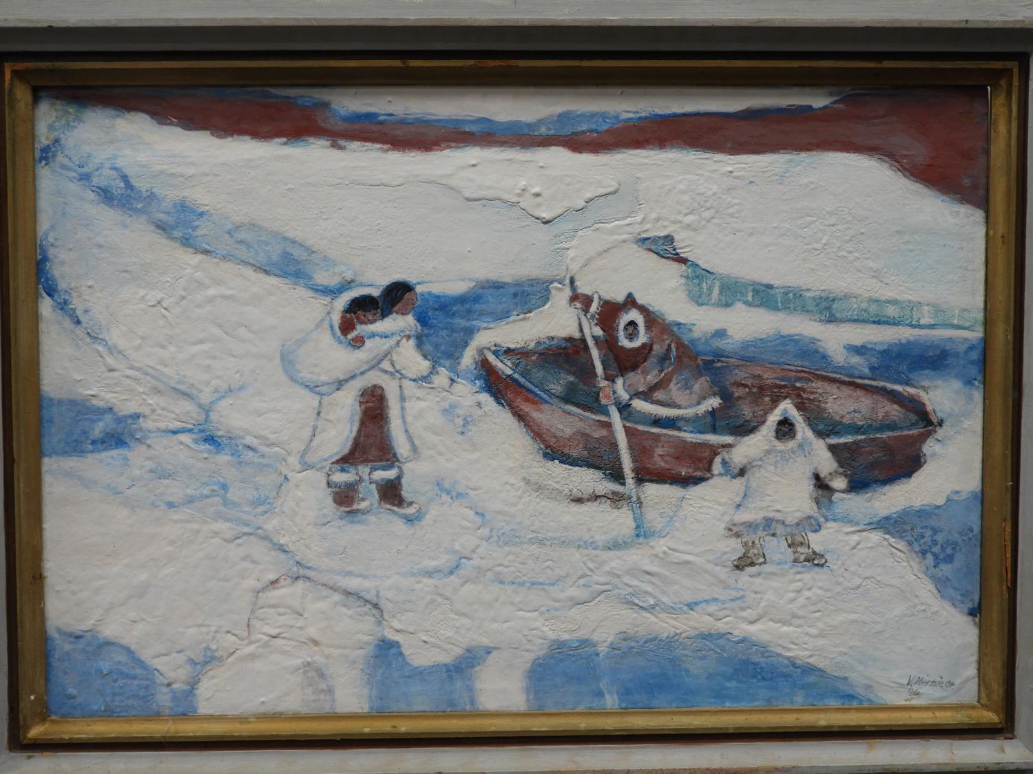 v. merniece, d.1990, oil on canvas, "inuit scene"