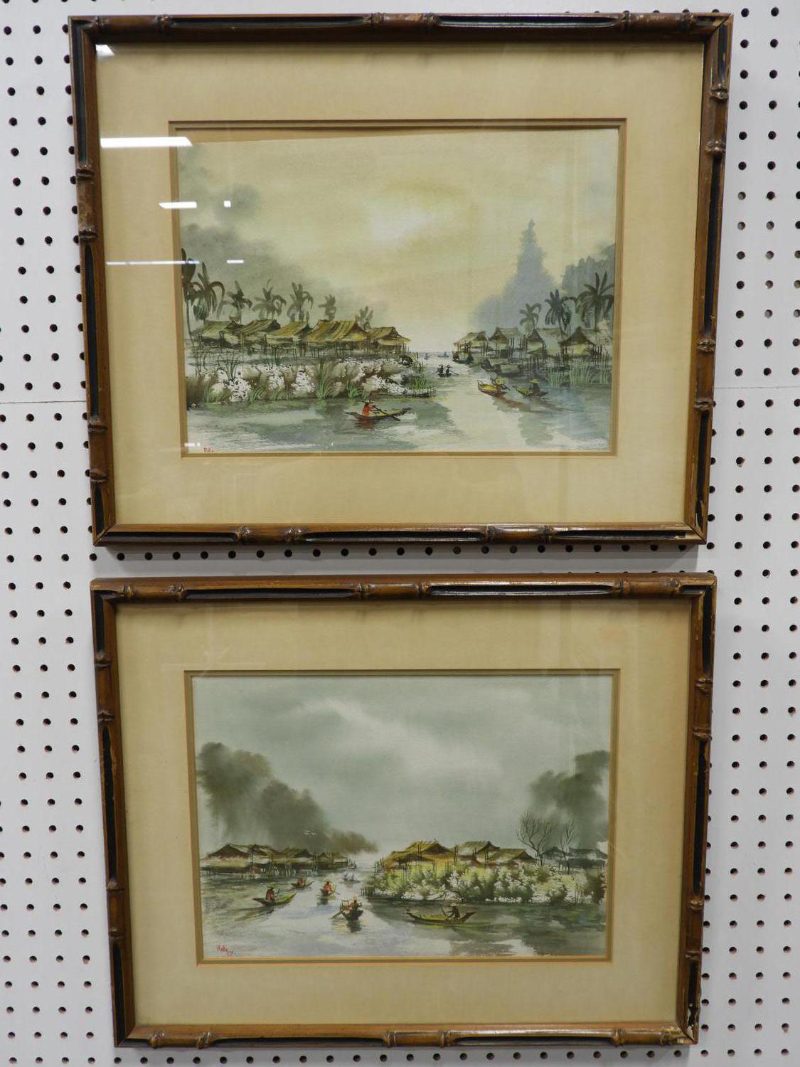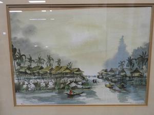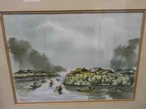 20th century asian school watercolors, d. 1977, 11" x 14 1/2", "coastal scene of boats"