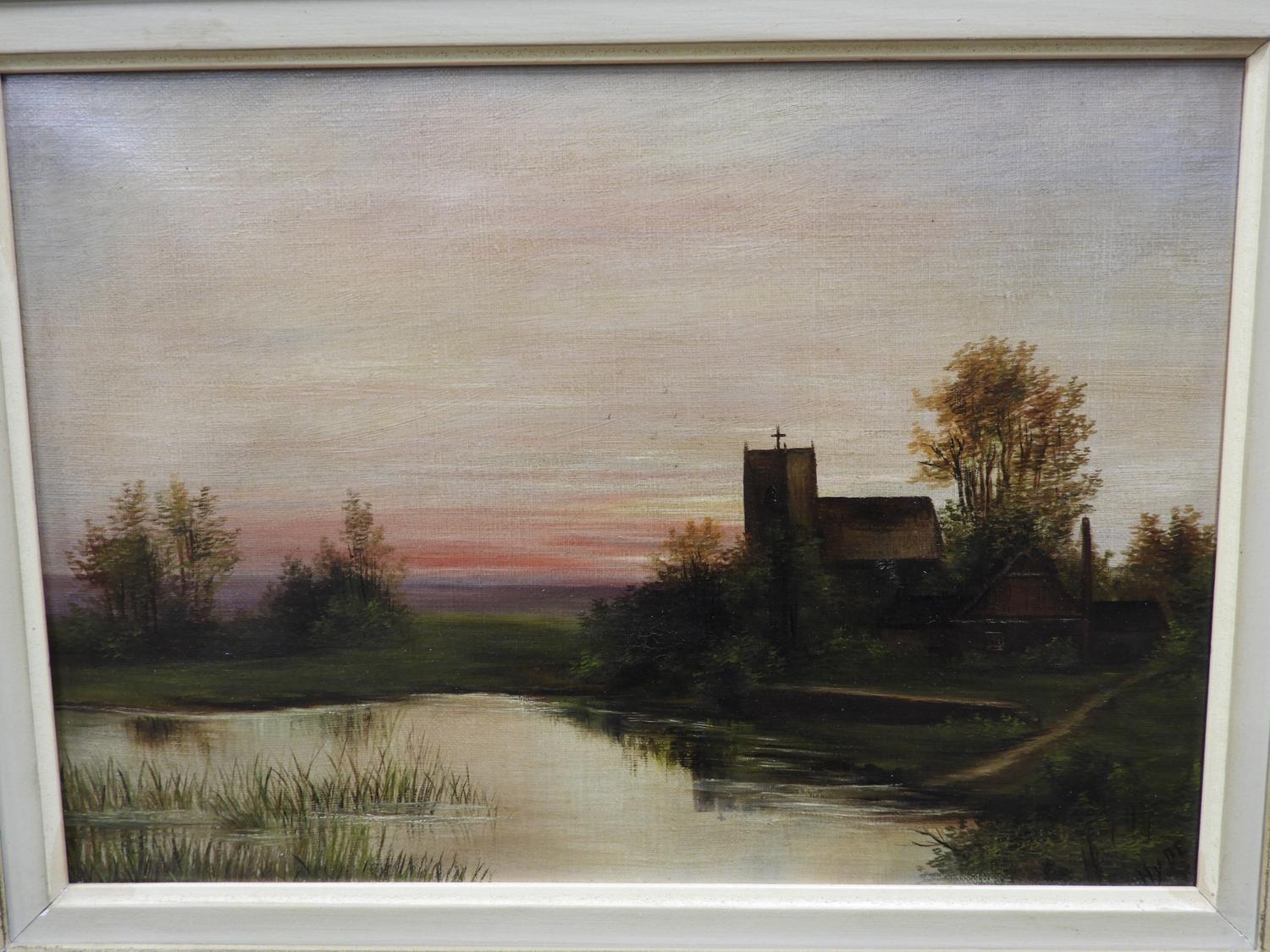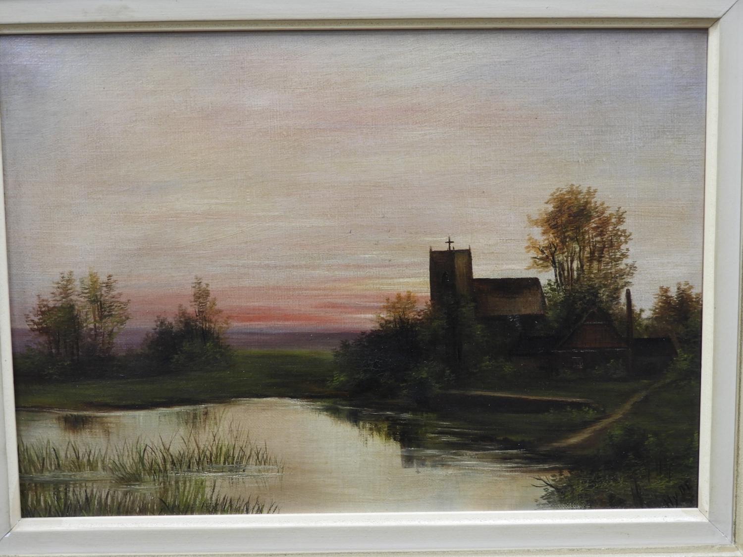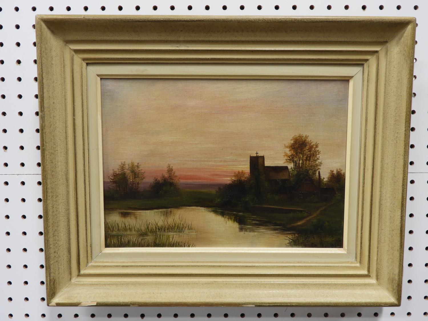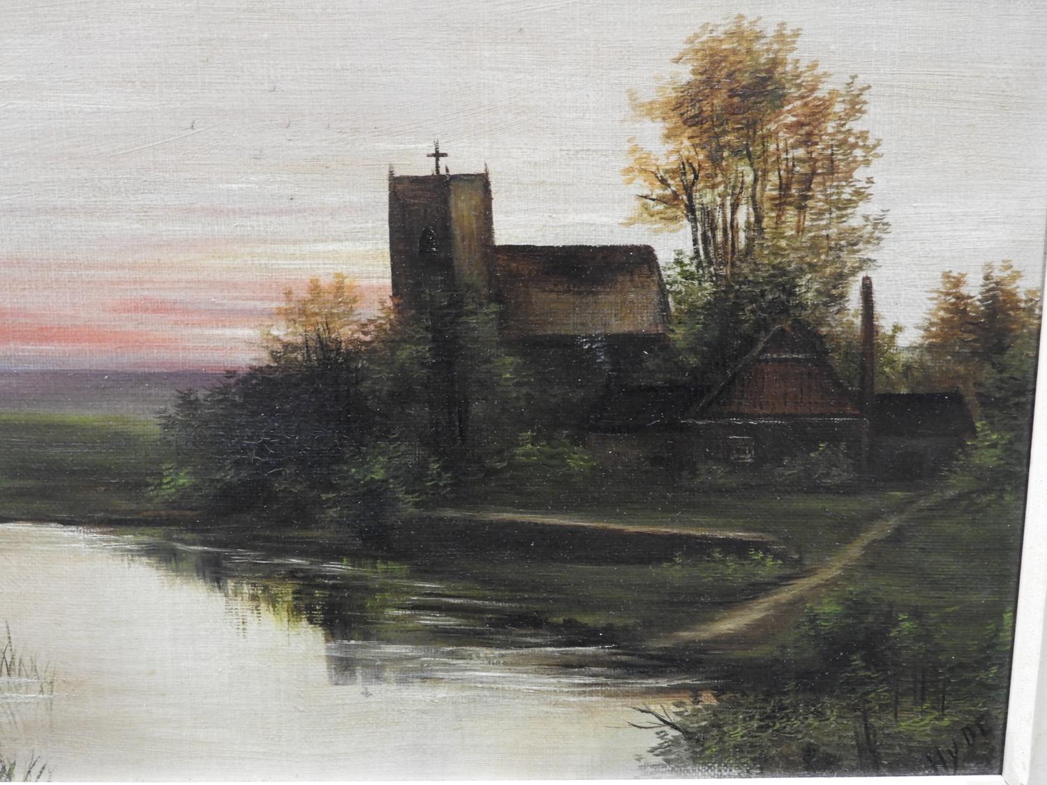 hyde, oil on canvas, 10" x 14", "landscape with church"
