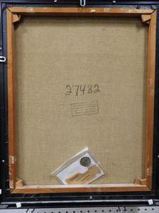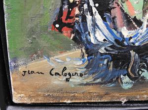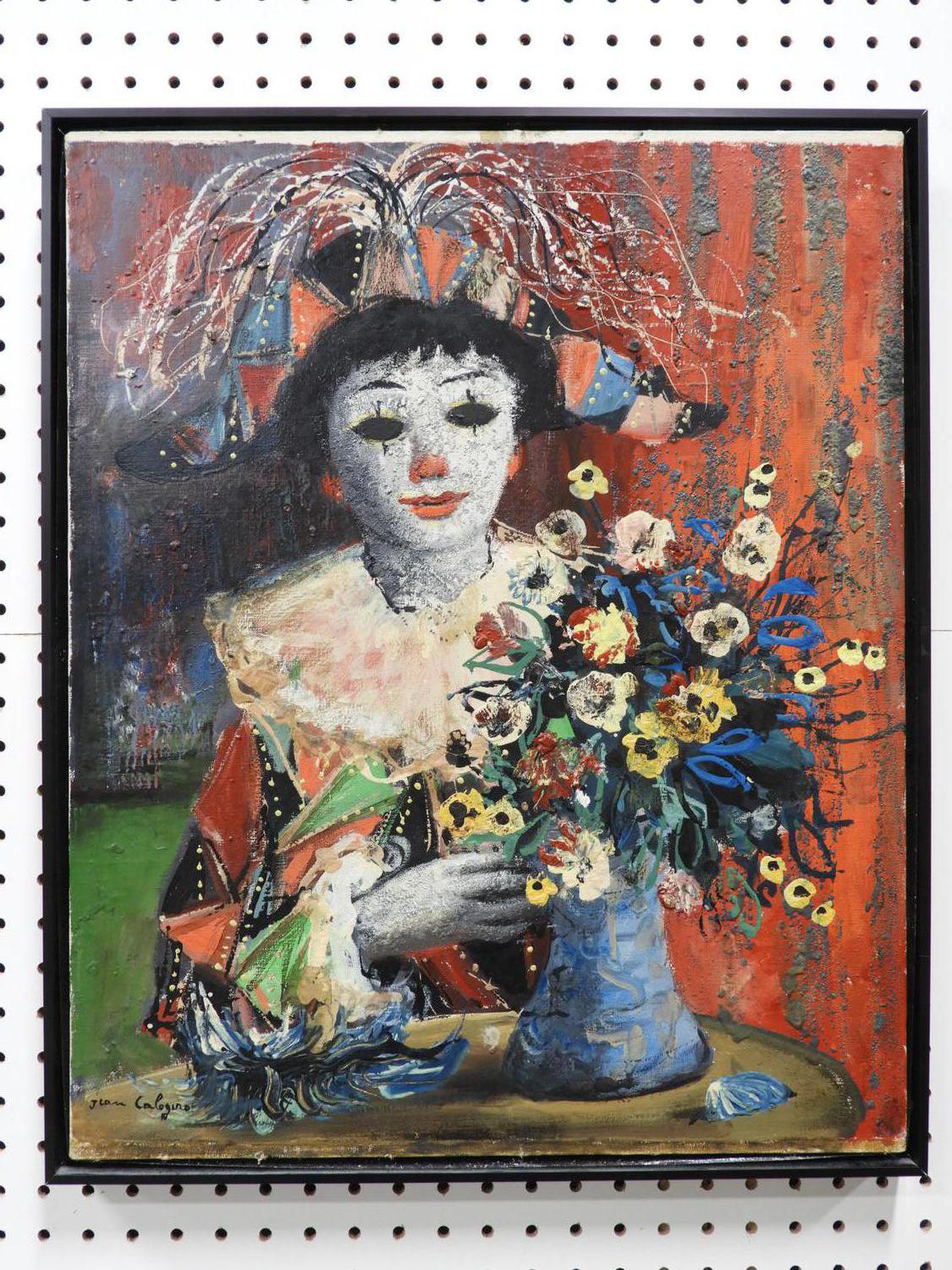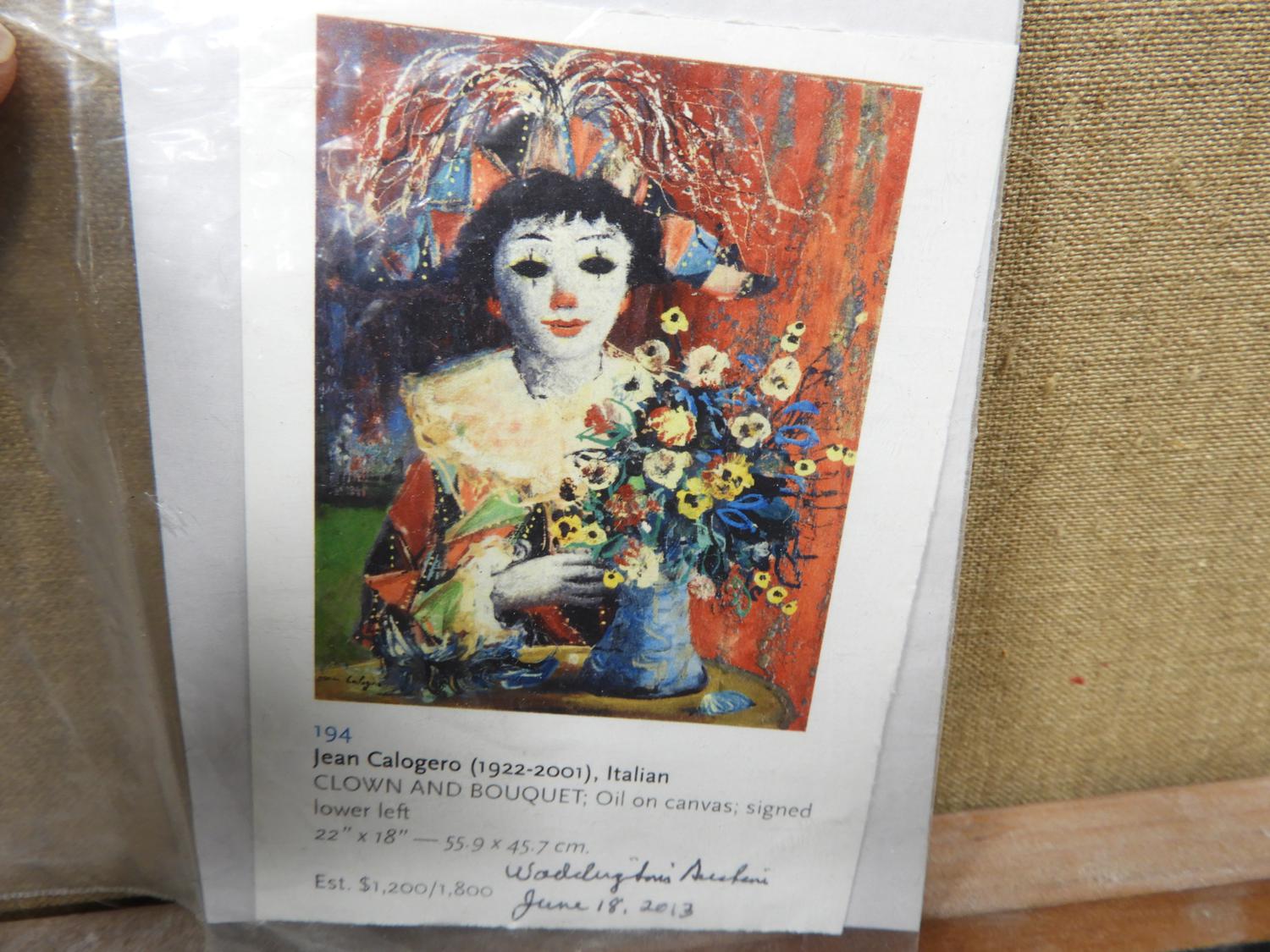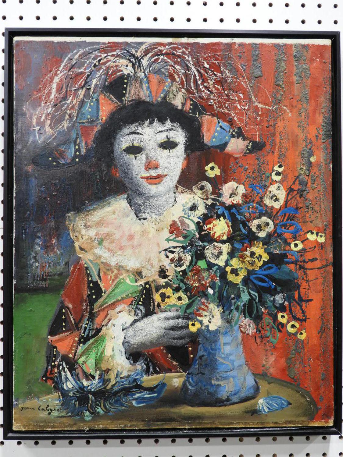 jean calogero(1922-2001), oil on canvas, 22" x 18", "clown and bouquet"