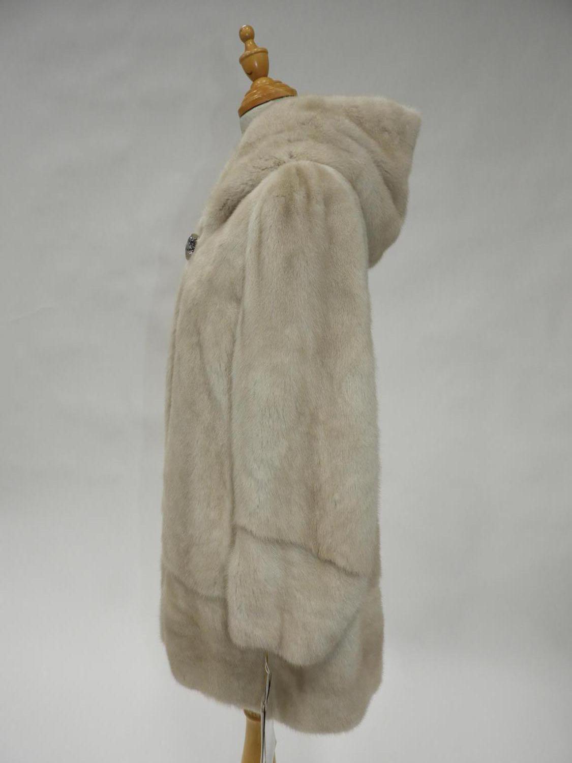 white champagne mink jacket with hood, size small, new with tag