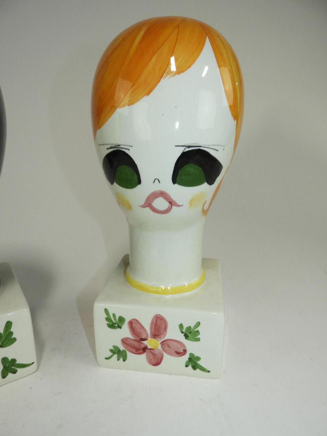 2 italian porcelain head wig stands