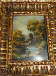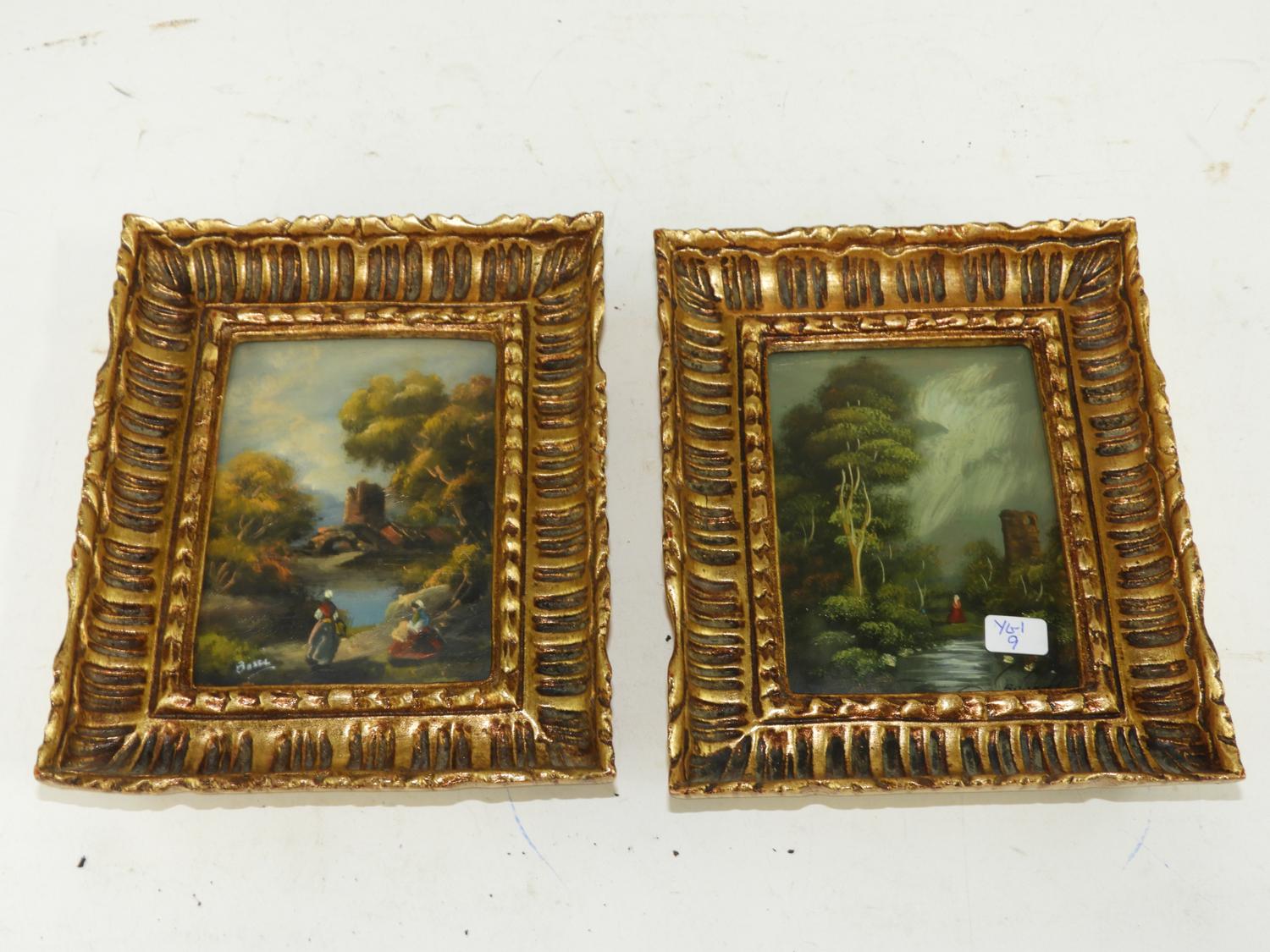 pr of small decorative oil paintings made in italy , 6 1/4" x 5"