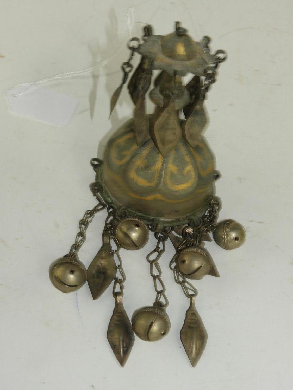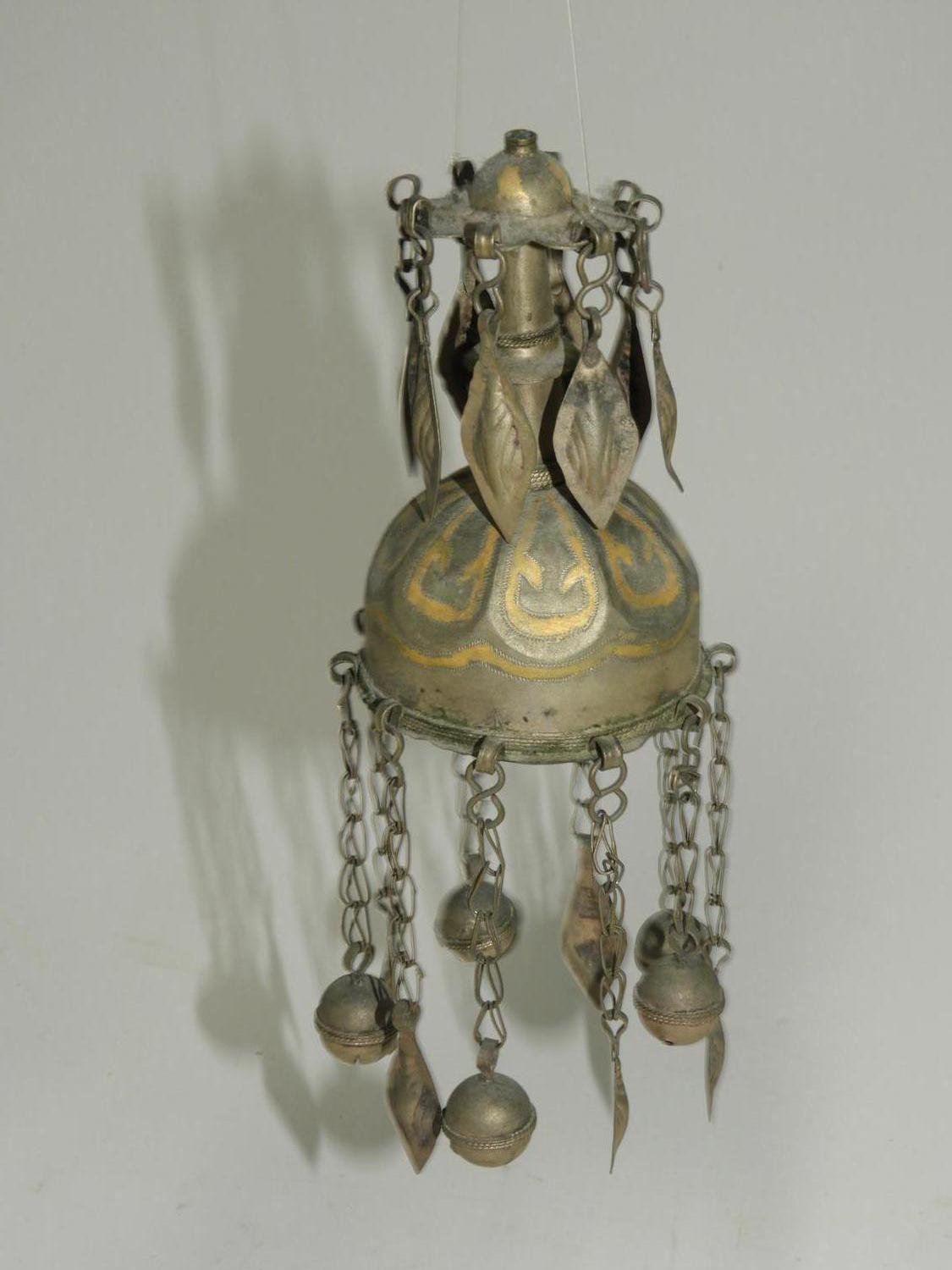 asian tribal shaped bell pendant, ht 5"
