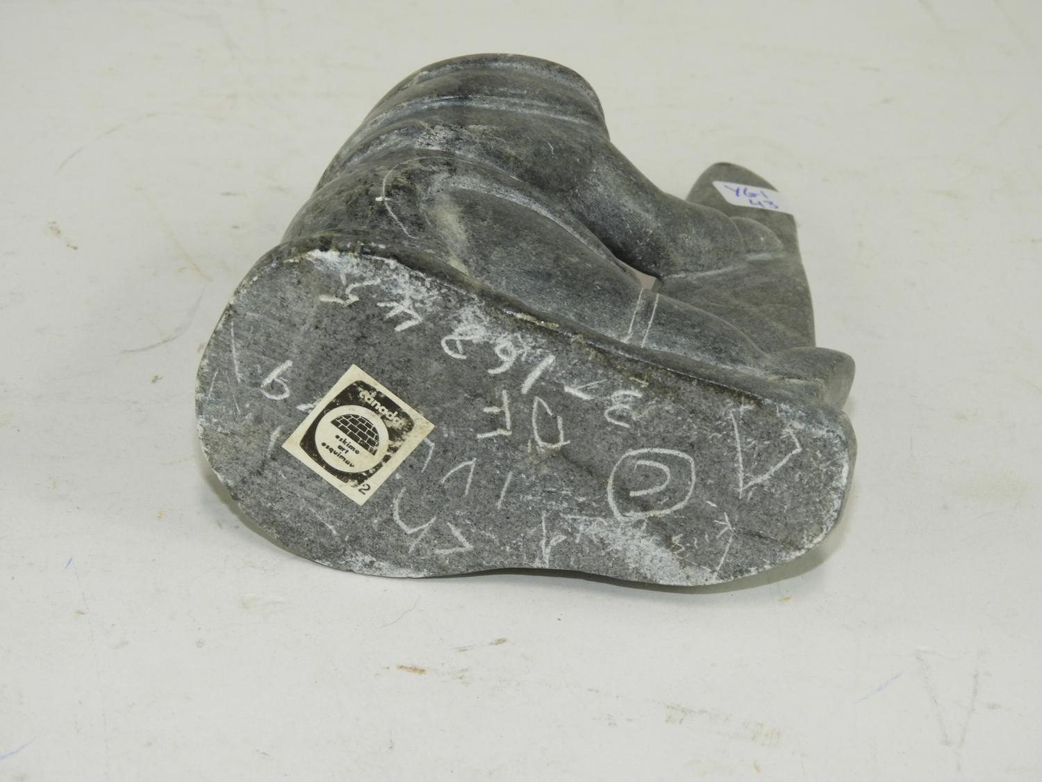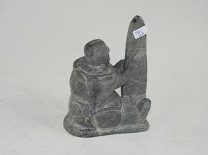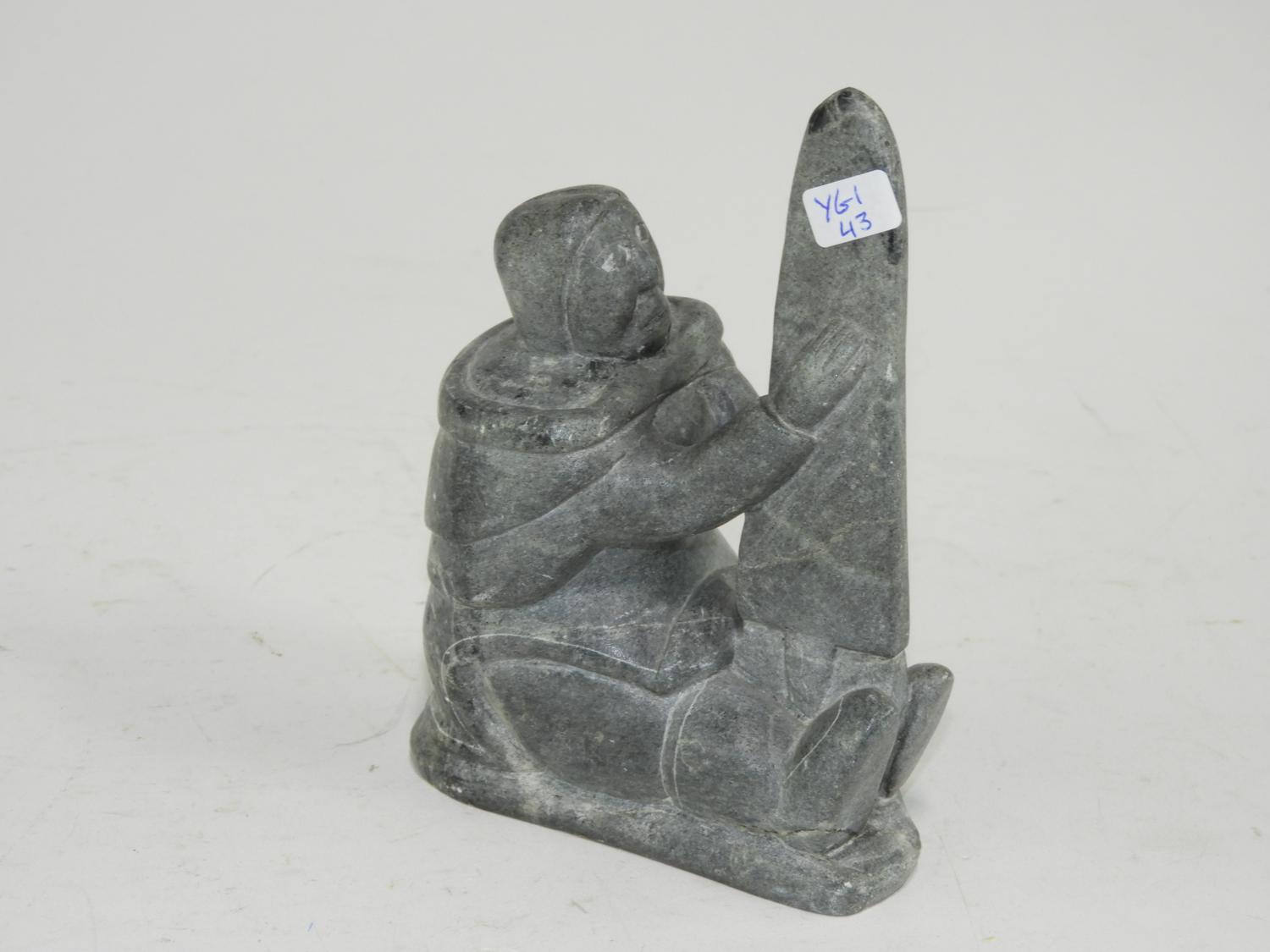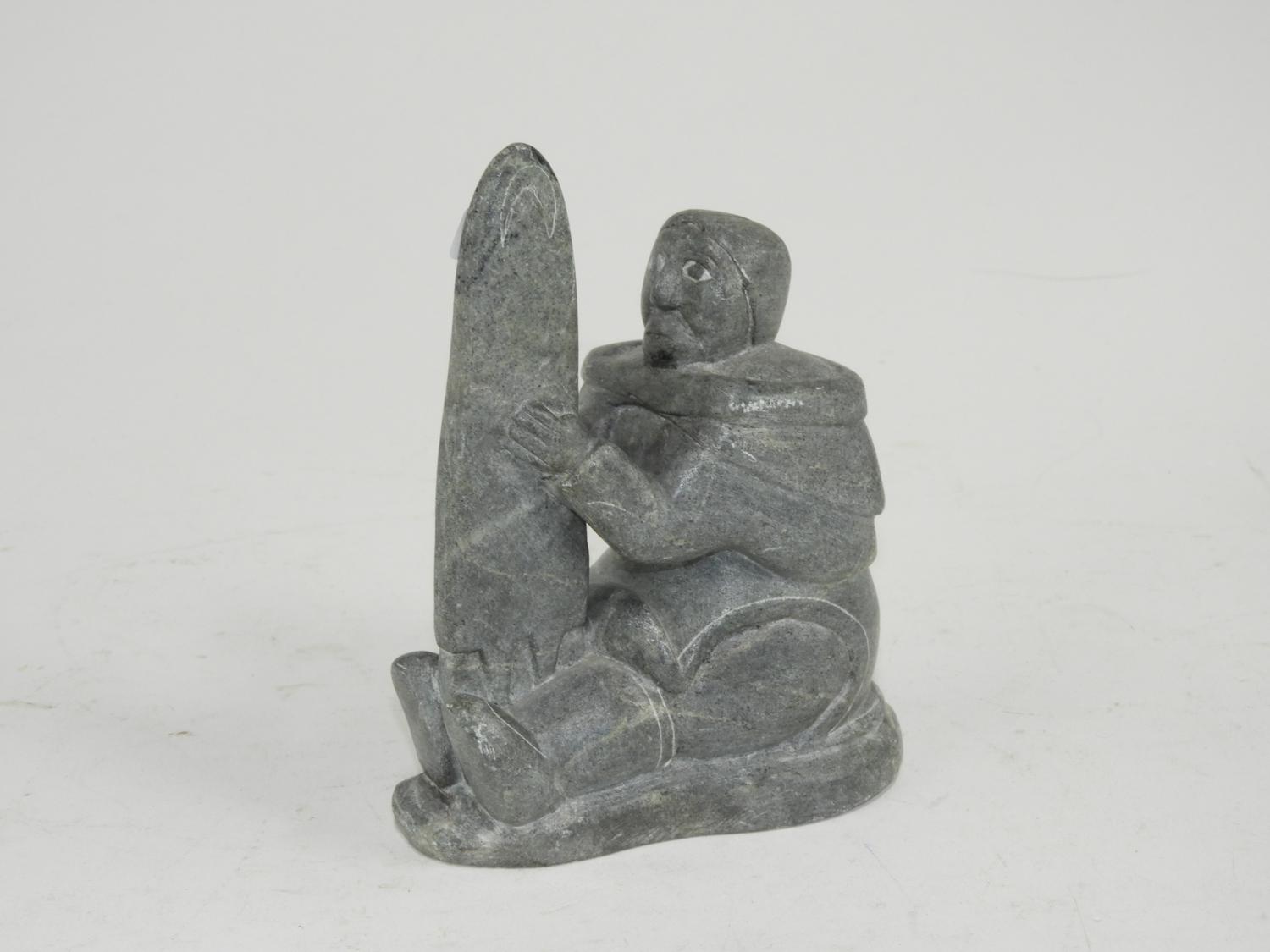 inuit carved soapstone hunter, 5 1/4" x 3 1/2"