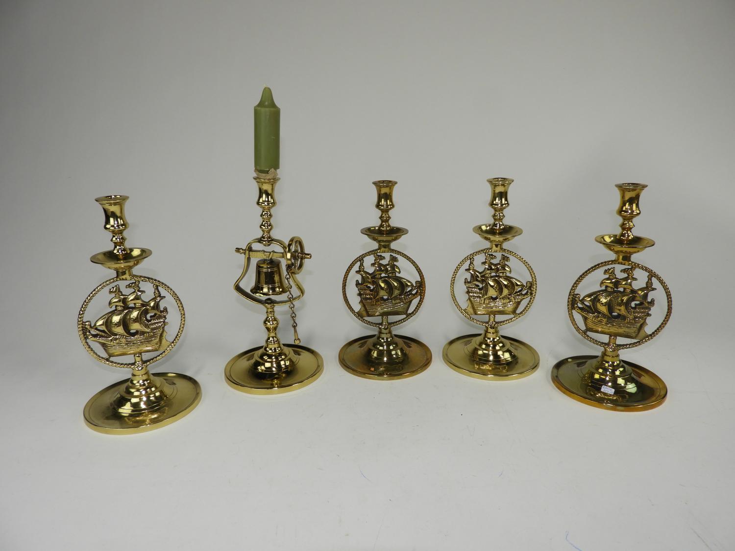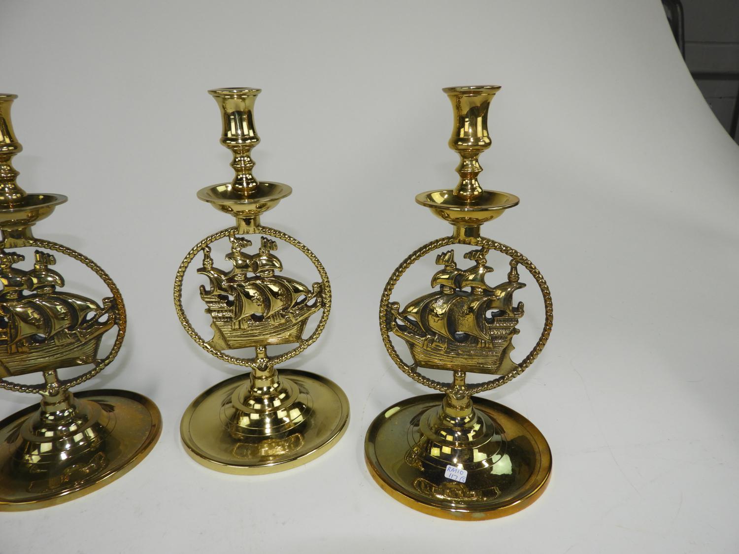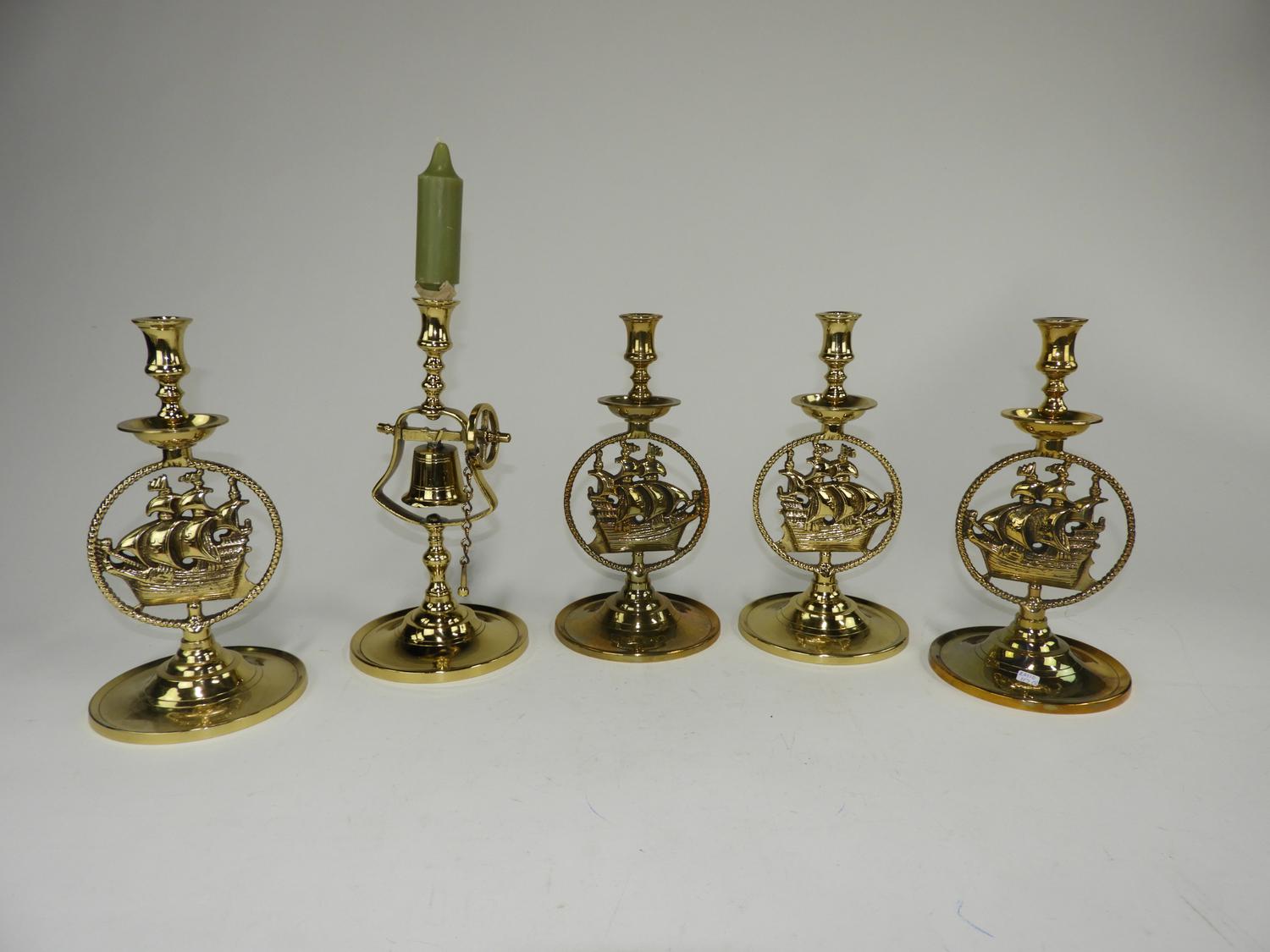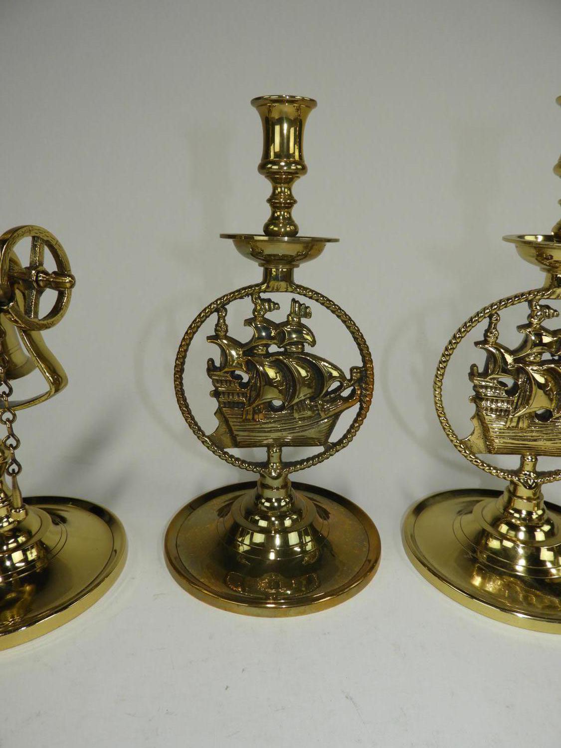 five nautical motif candle holders, ht 11 1/2"