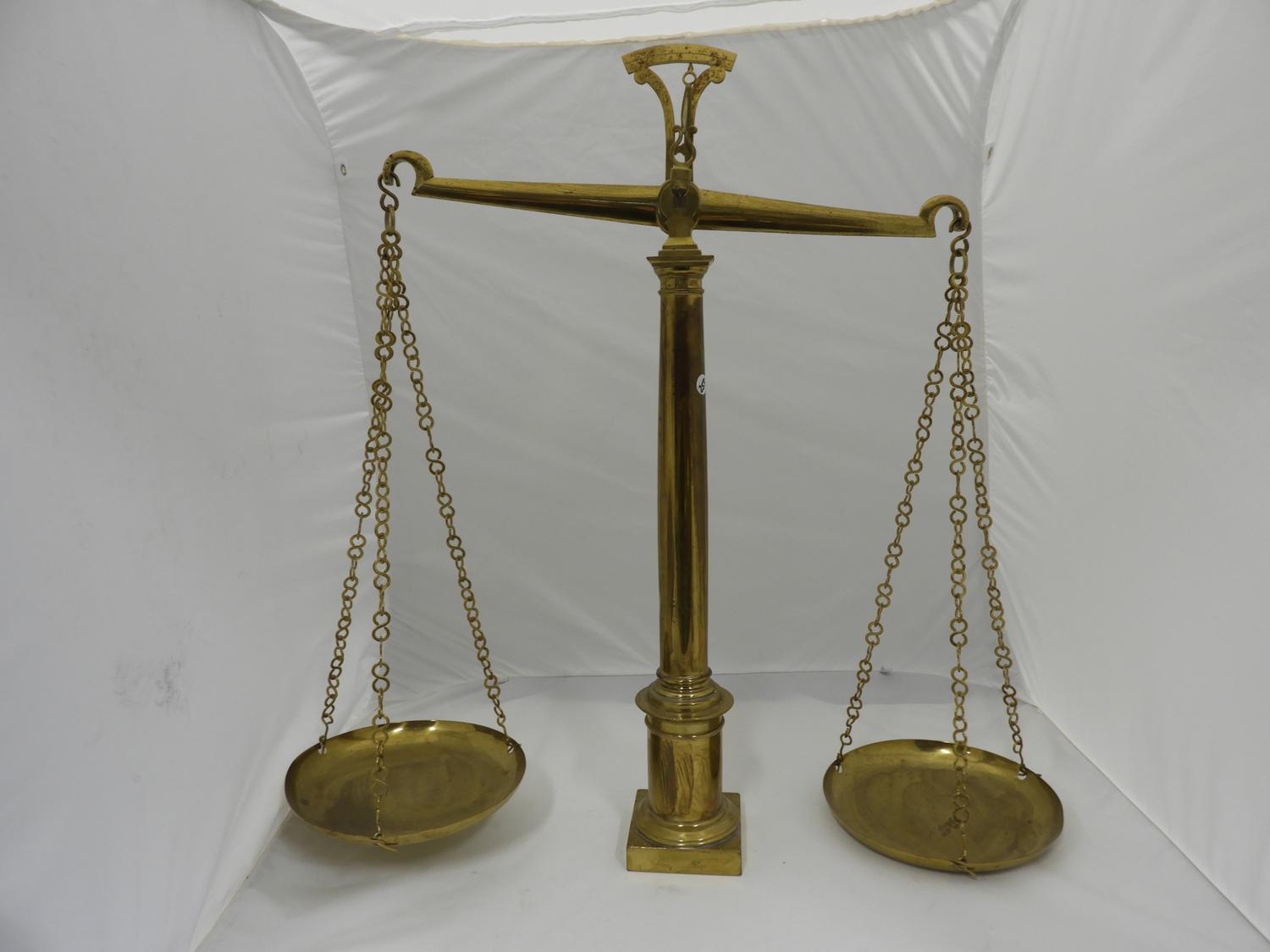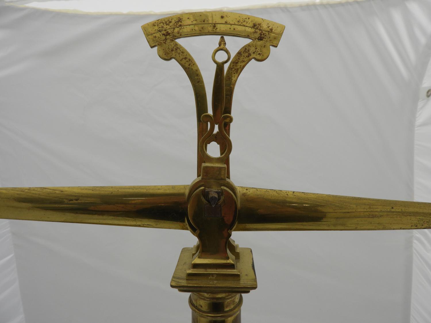 large brass balance scale, ht 31"