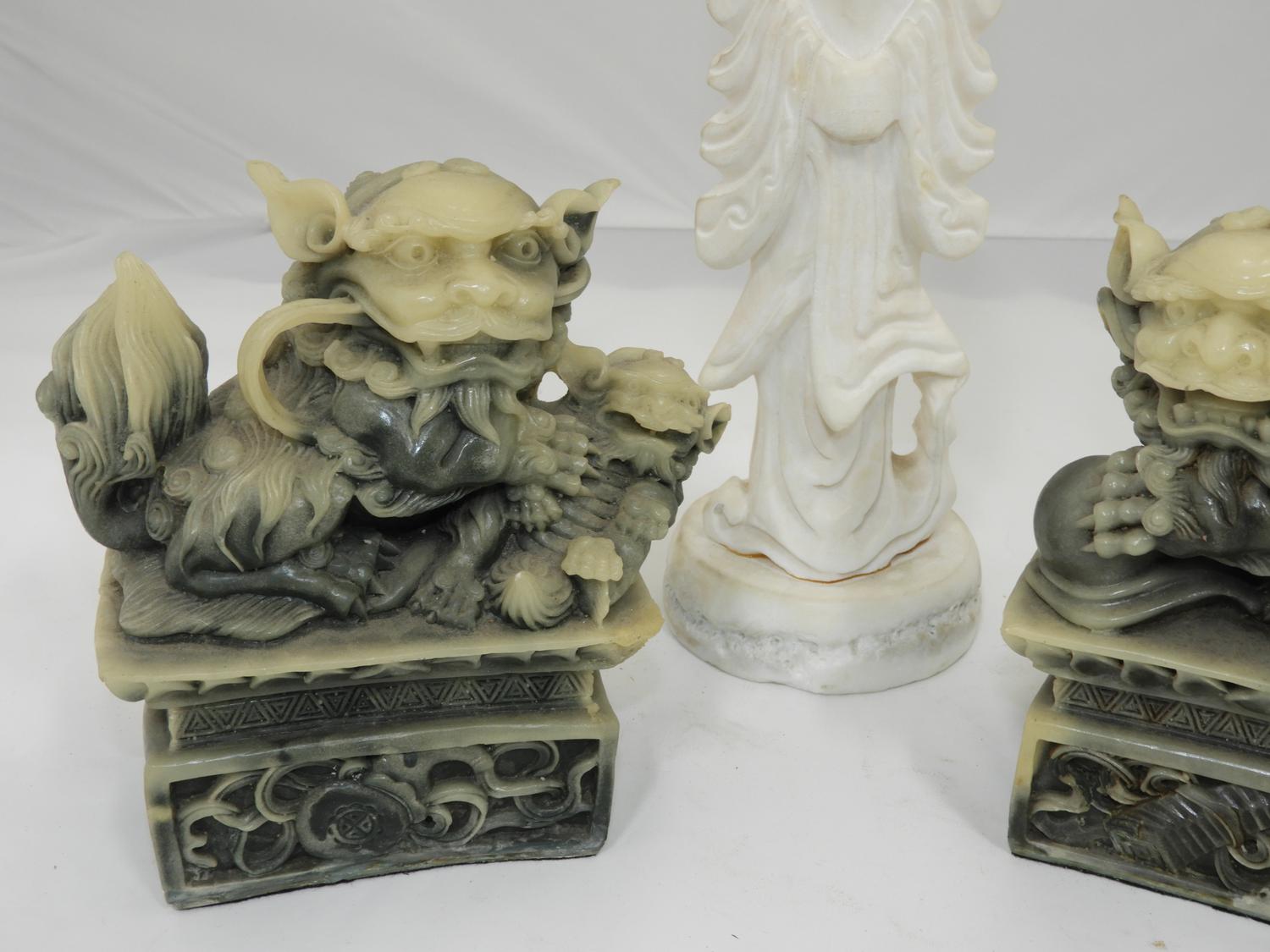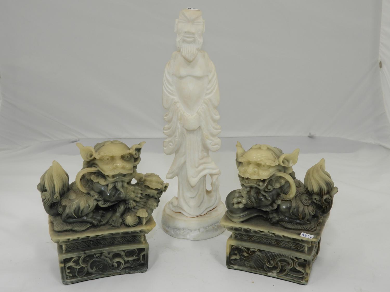 pr of fu lion bookends with figure