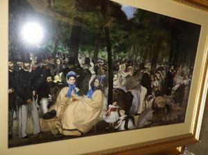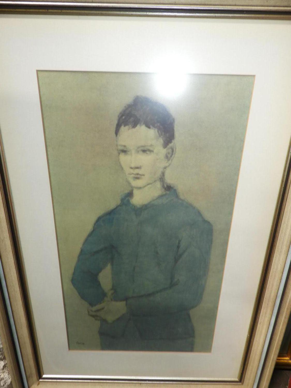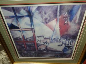 three framed prints, picasso, chagall, monet