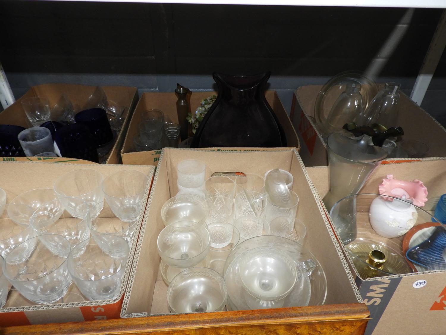6 boxes of misc stemware glass etc