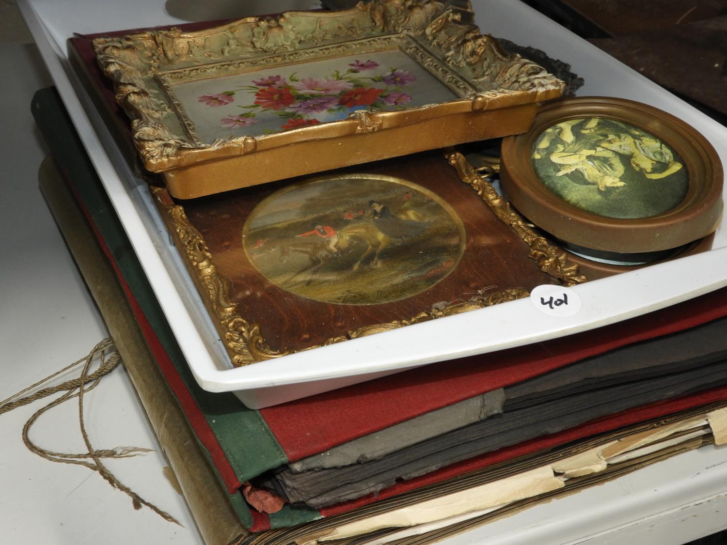 lot of framed prints / 2 books