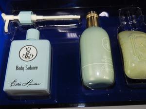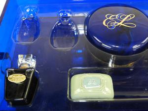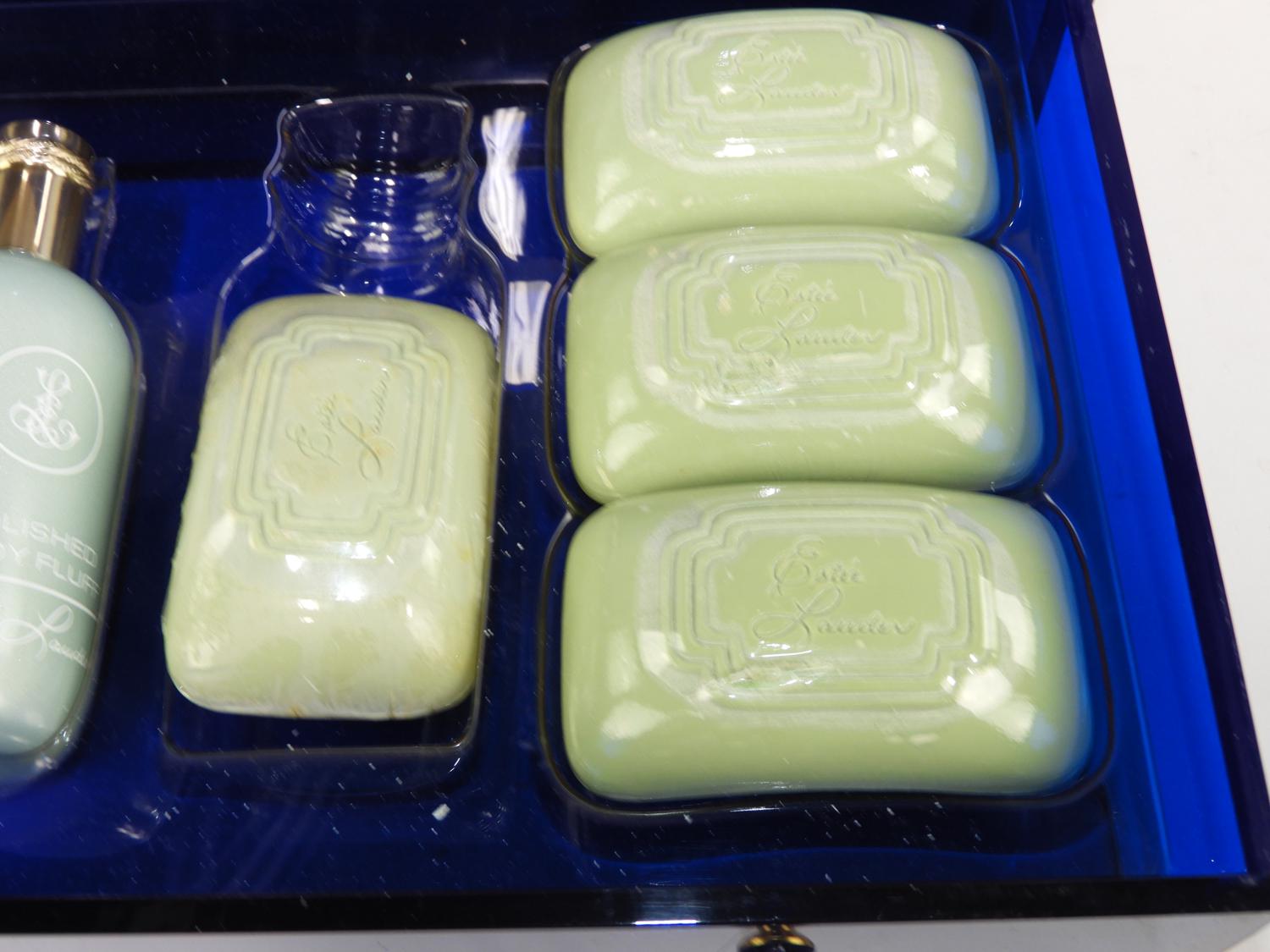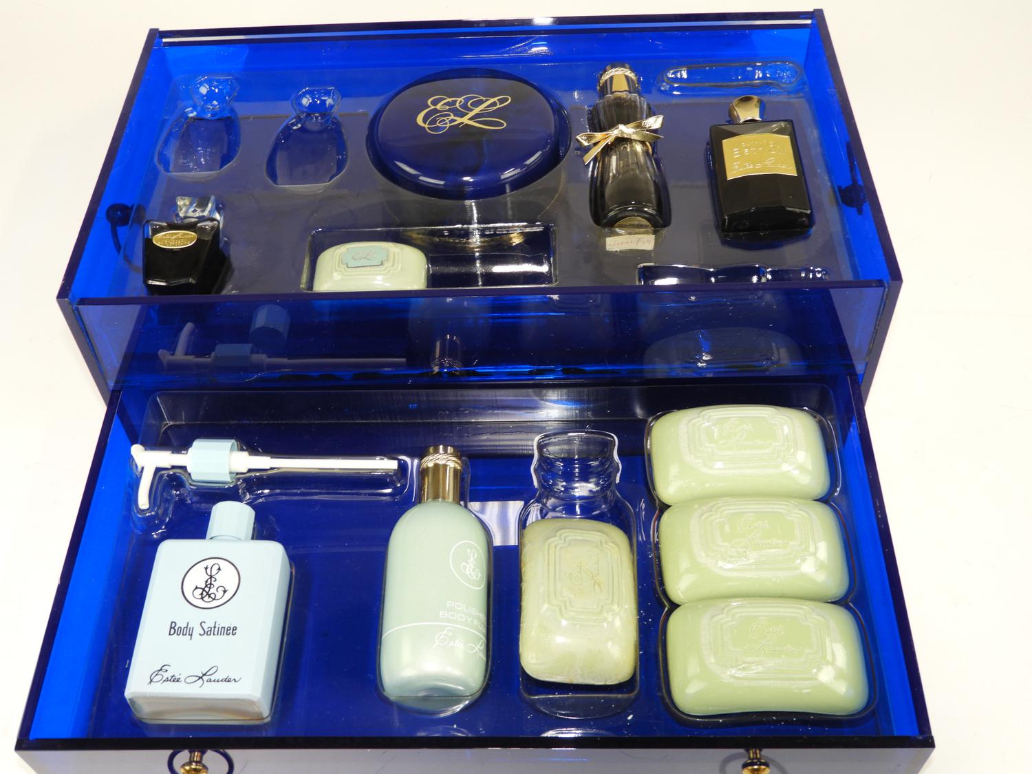 estee lauder blue lucite box bath set