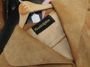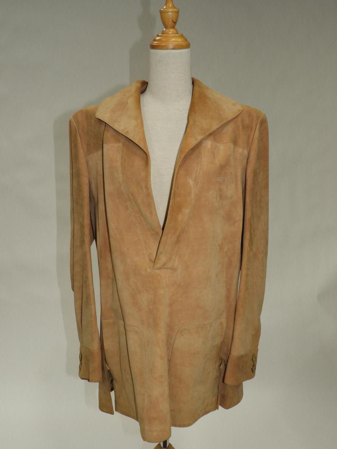 Size small, Yellow shift marked, pink shift armpit stains, wool suits and mens small suede shirt