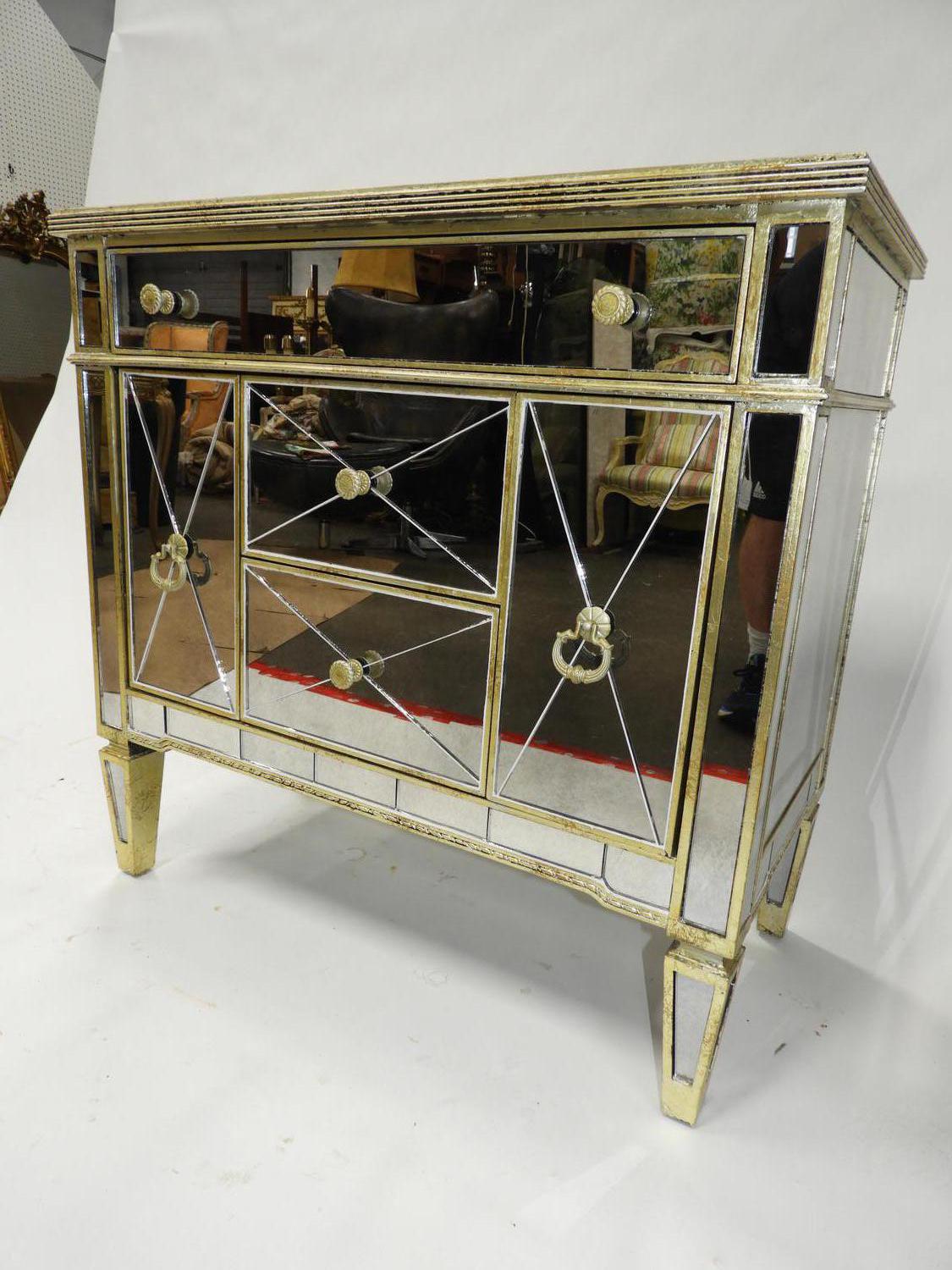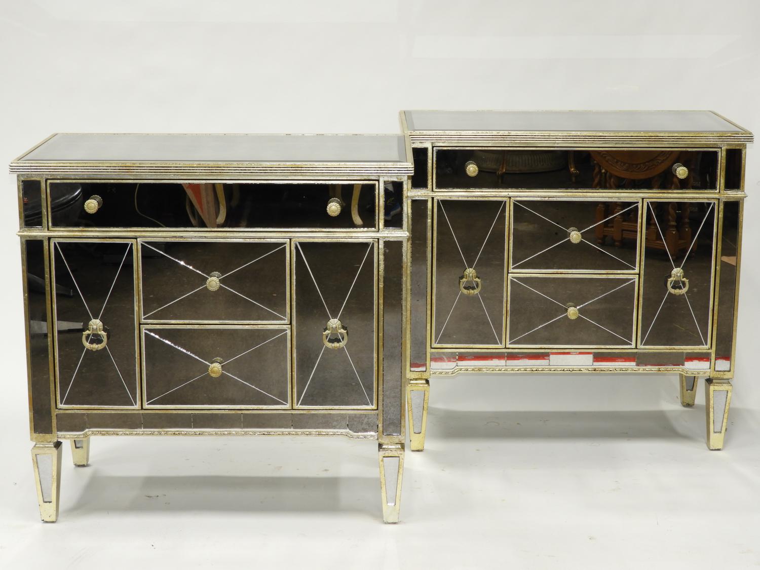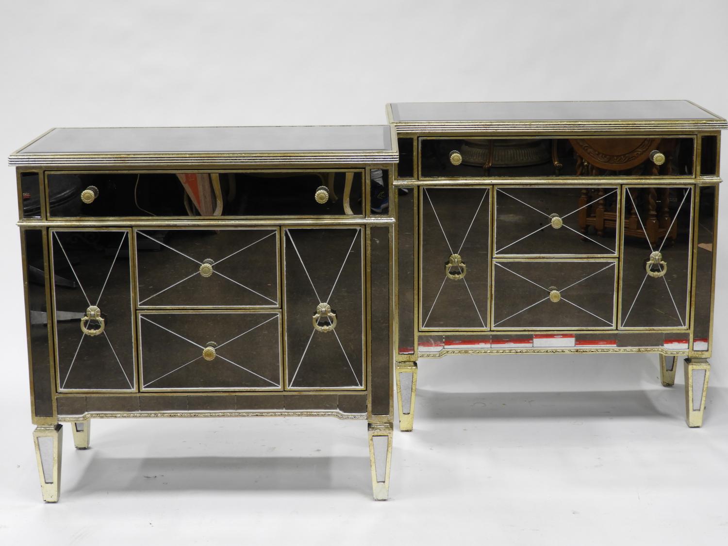 pair of mirrored side cabinets, late 20th century, 35" x 36"x 19"