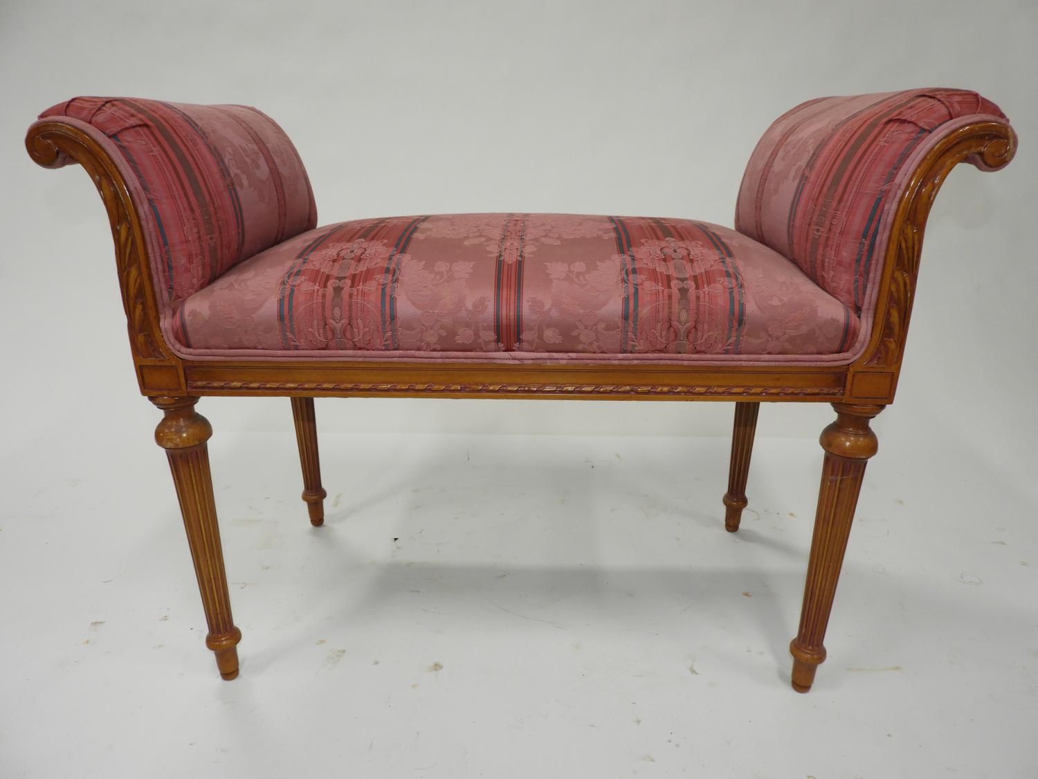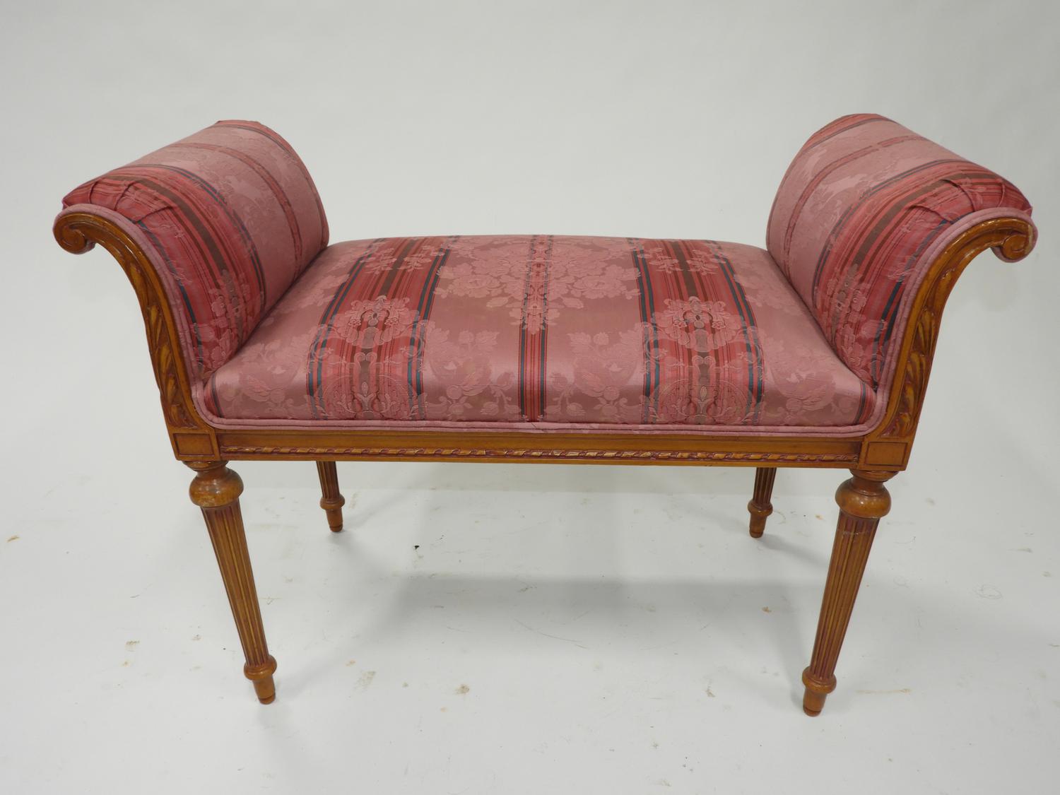 louis xvi-style upholstered bench, 20th century, 25" x 34" x 17"