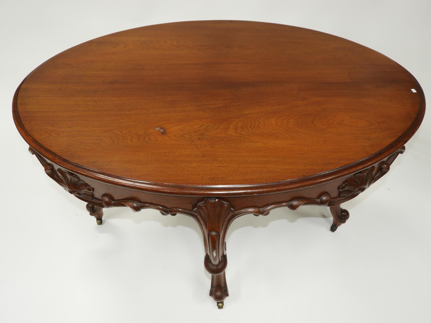 19th century mid victorian walnut parlor table, 29 1/2" x 48" x 34"