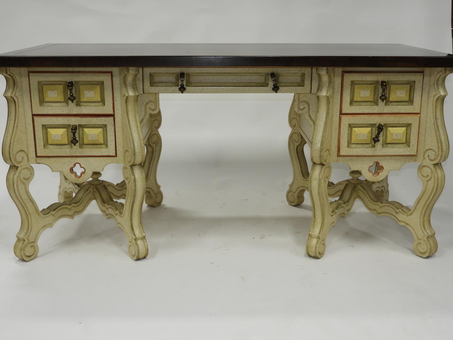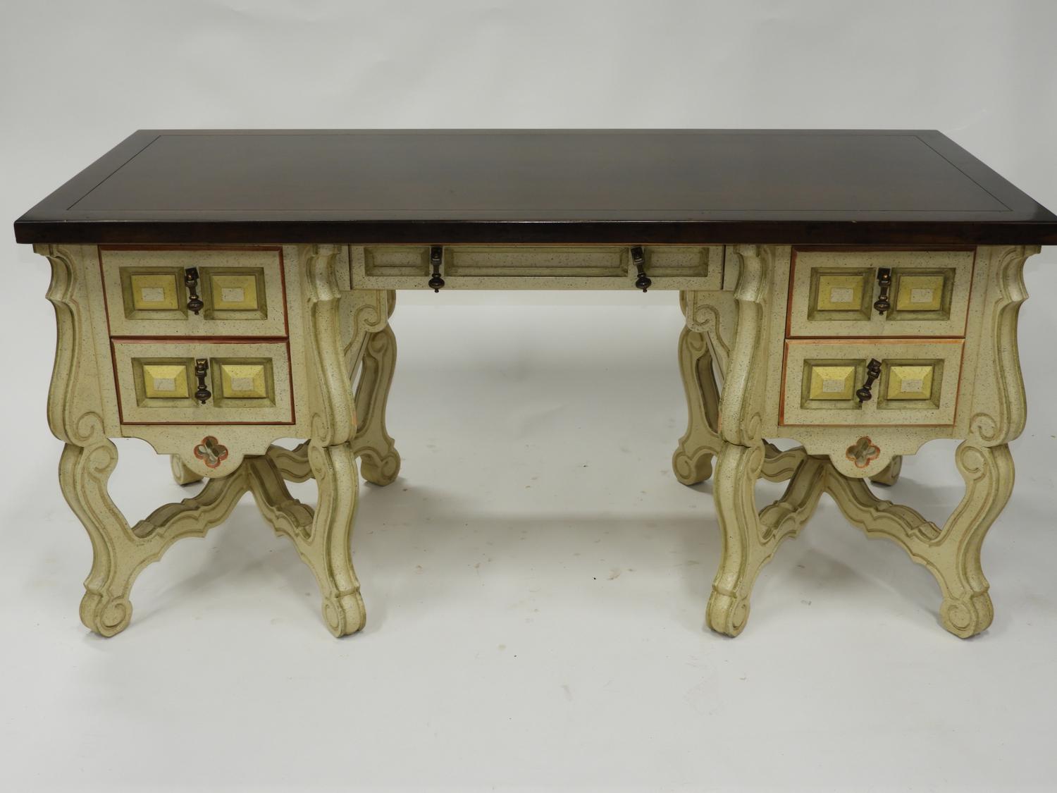 louis xiv-style painted desk, 20th century, 20 1/2" x 64" x 28"