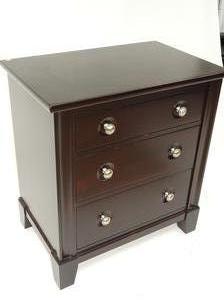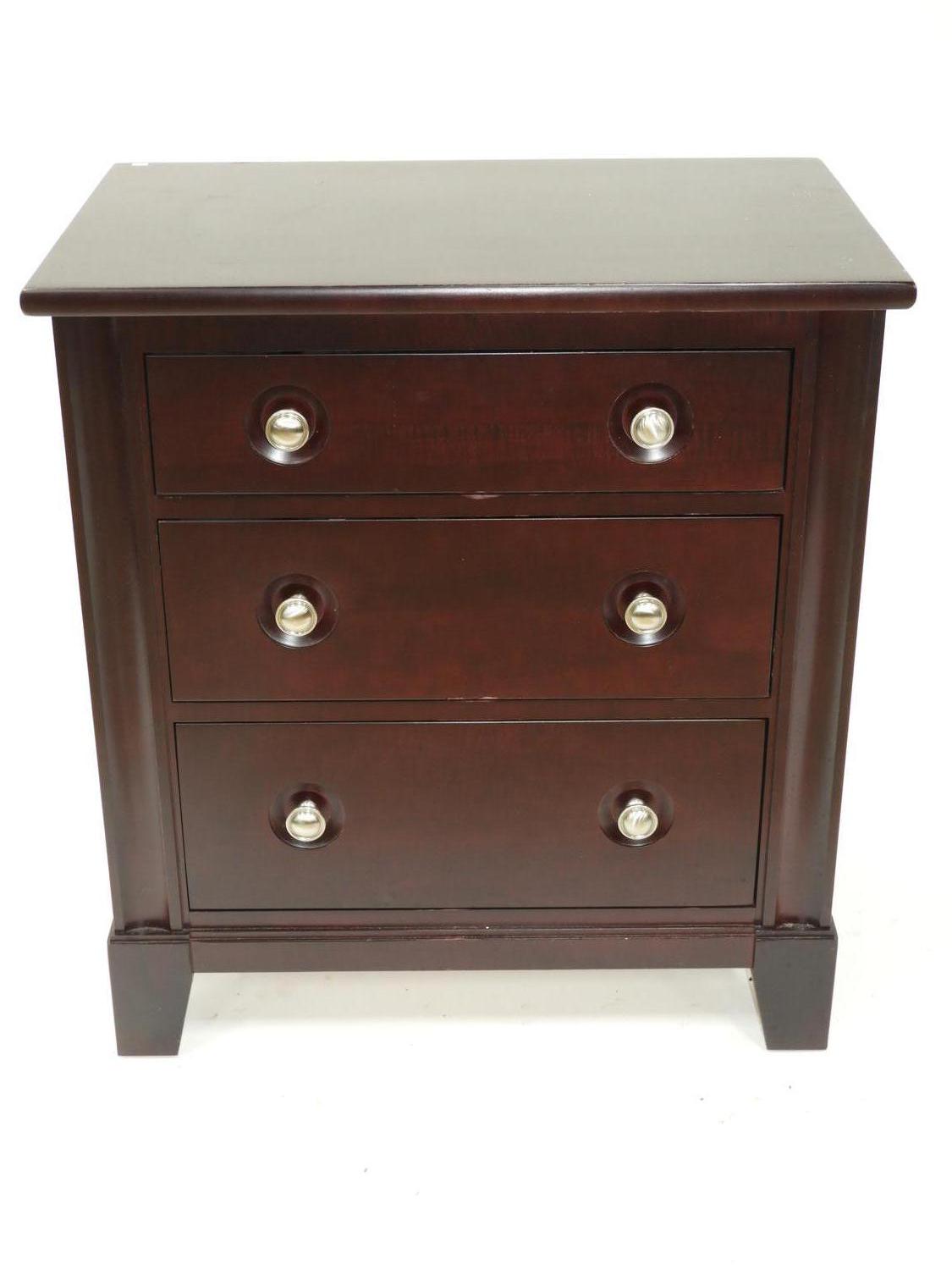 lacquered 3 drawer chest, 30" x 28" x 18"