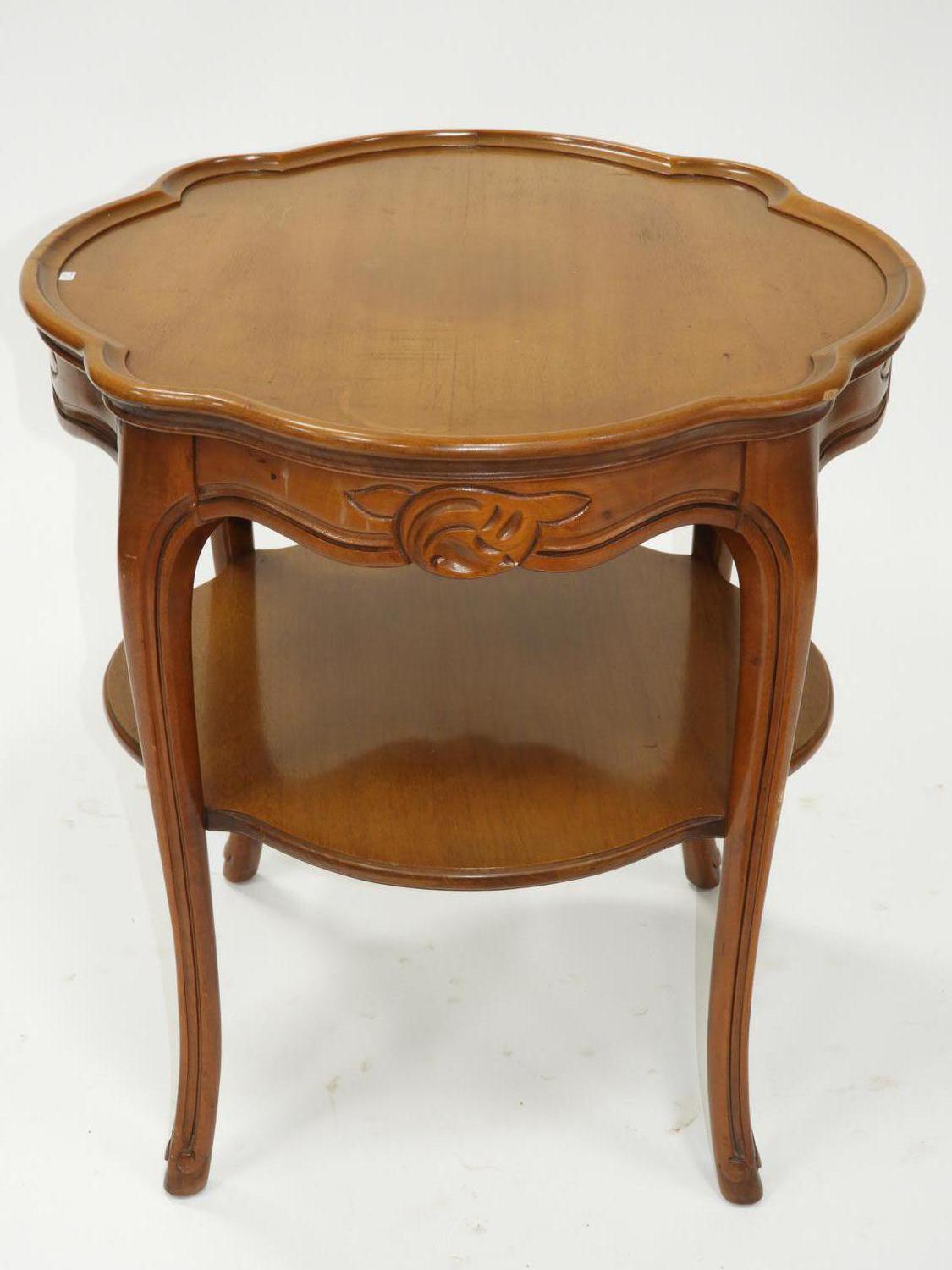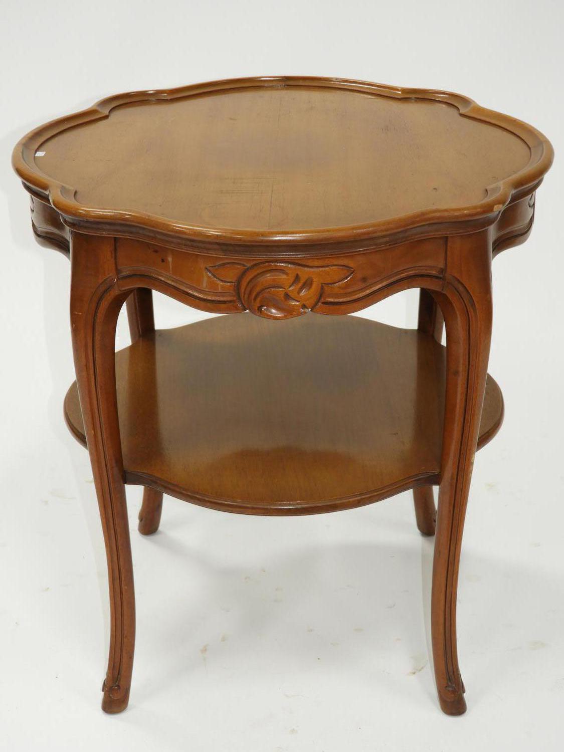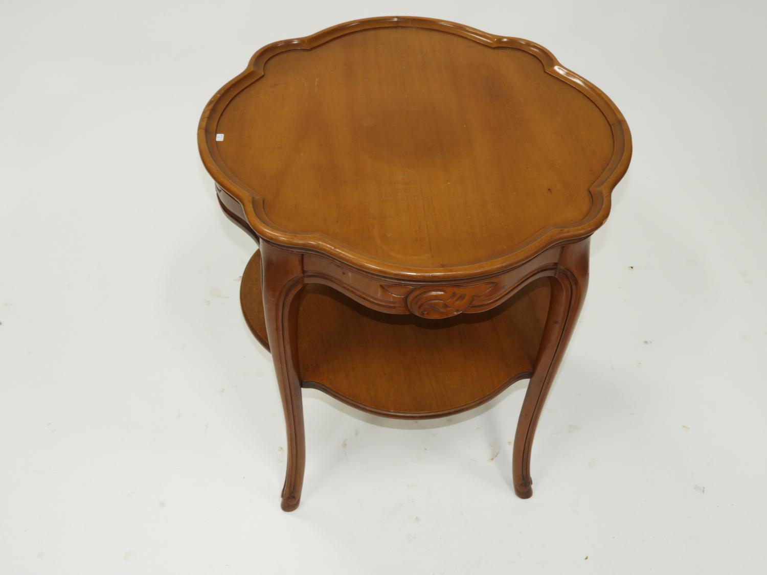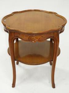 fruitwood 2 tier side table, mid 20th century, 25" x 24" x 24"