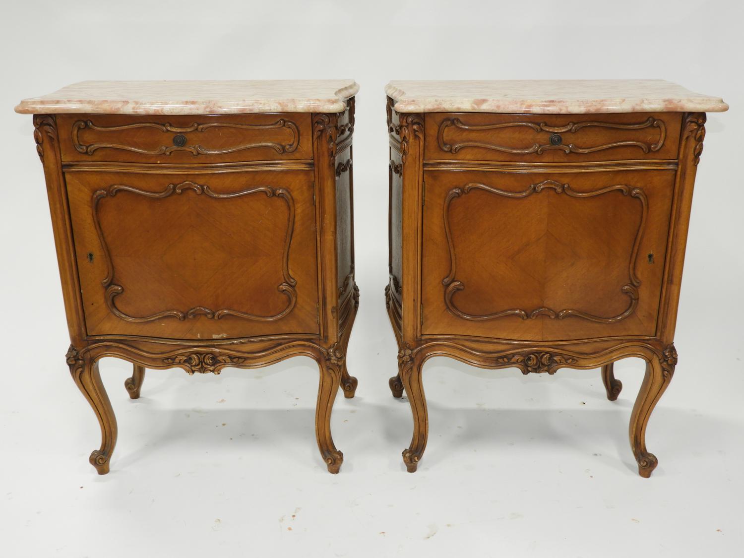 pair of louis xv style marble top side tables, early 20th century, 29" x 21" x 15"
