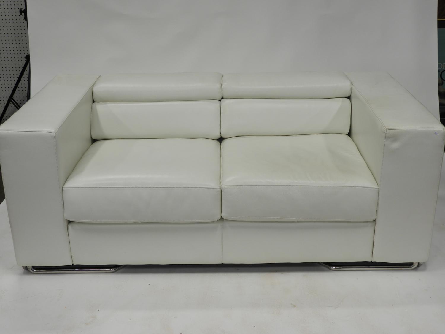 modern white leather loveseat, 27 1/2" x 72" x 40"