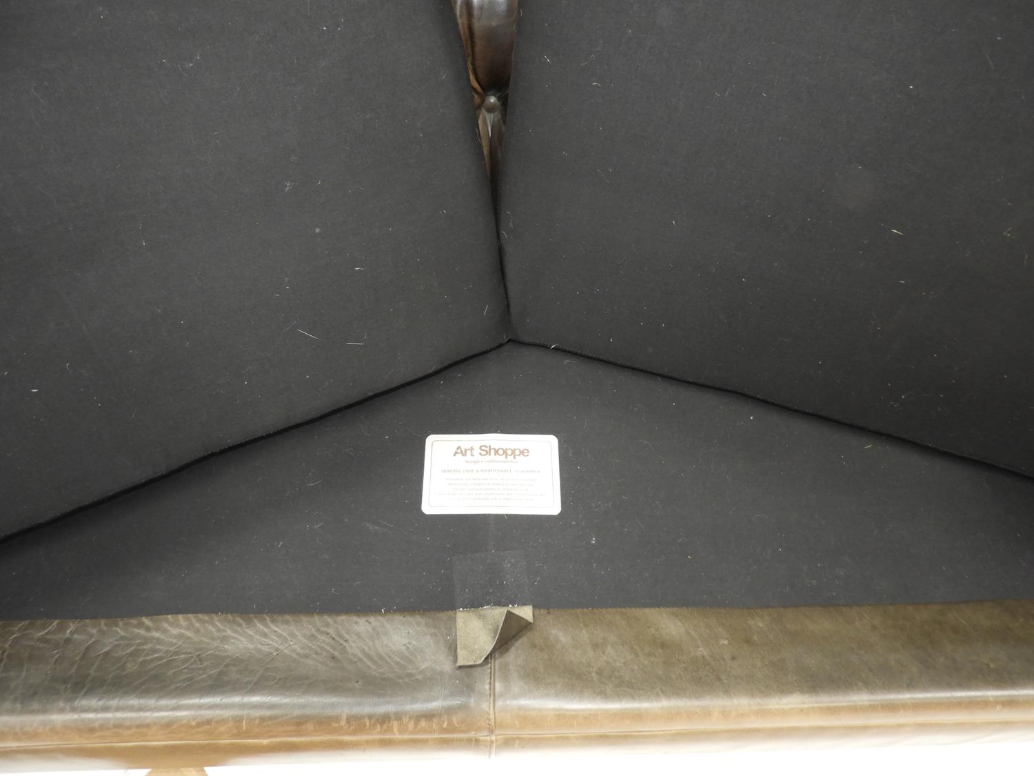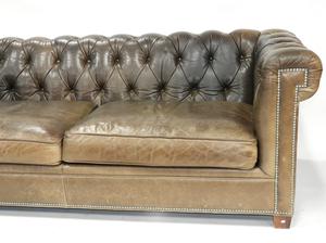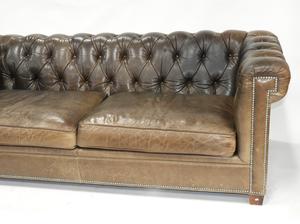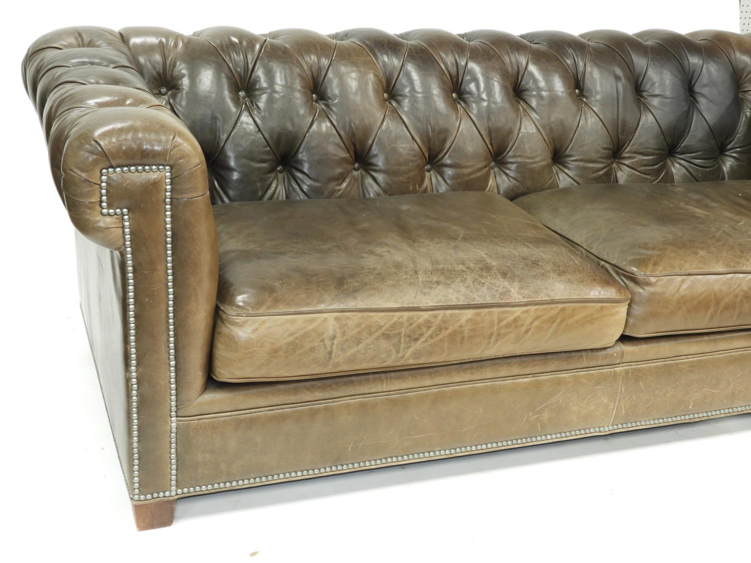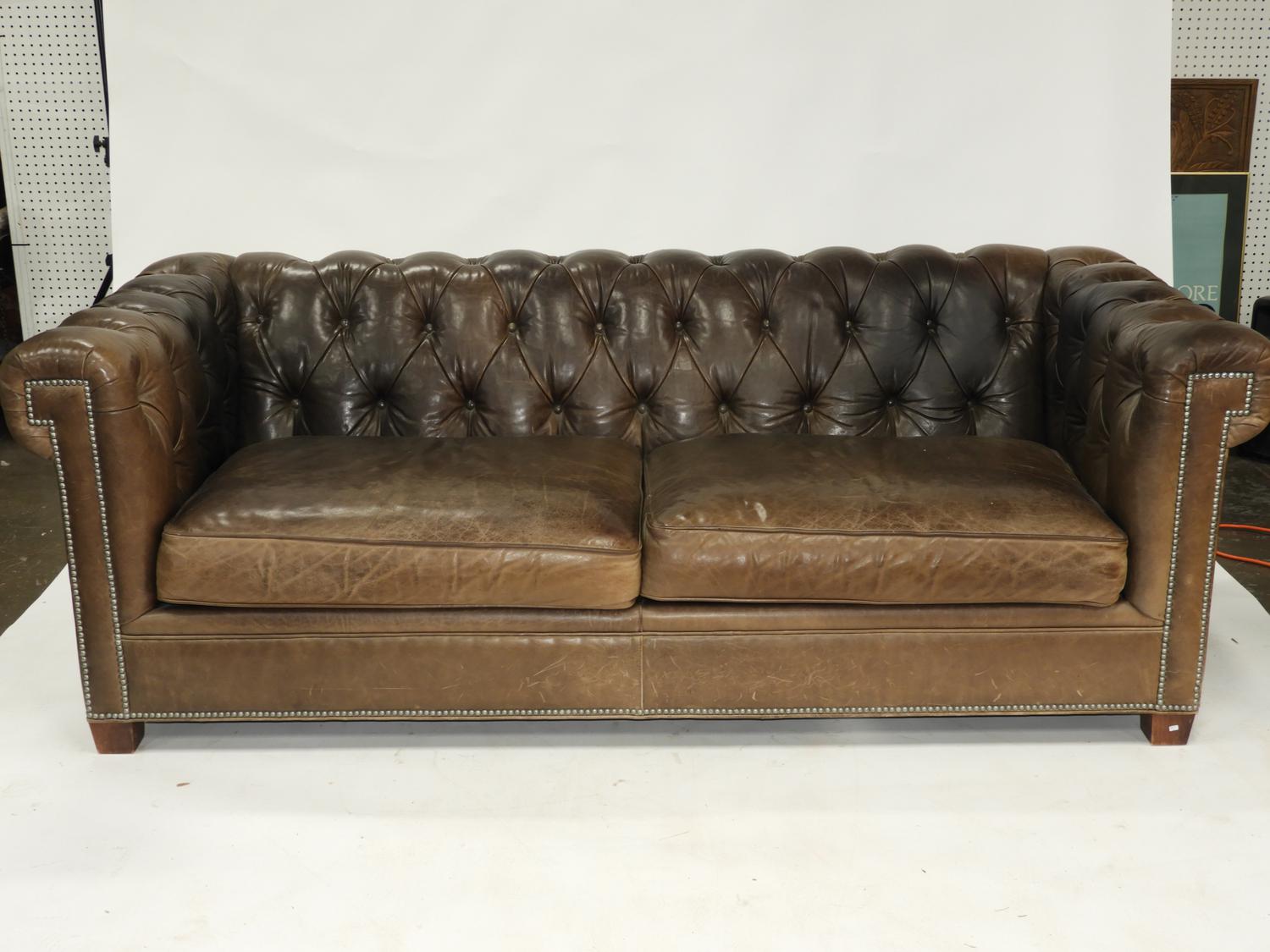 leather button back sofa with close nail studding from the art shoppe, 30" x 88" x 31"