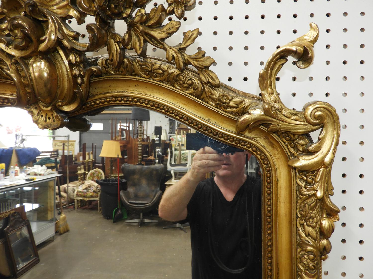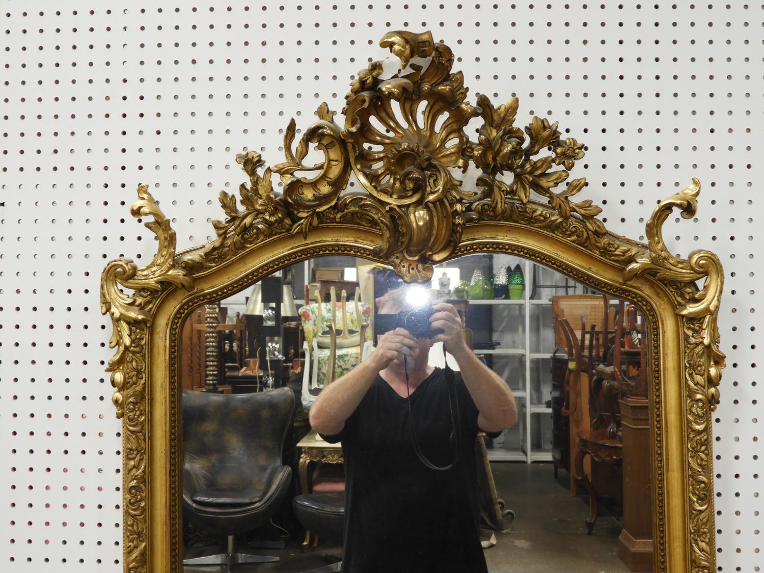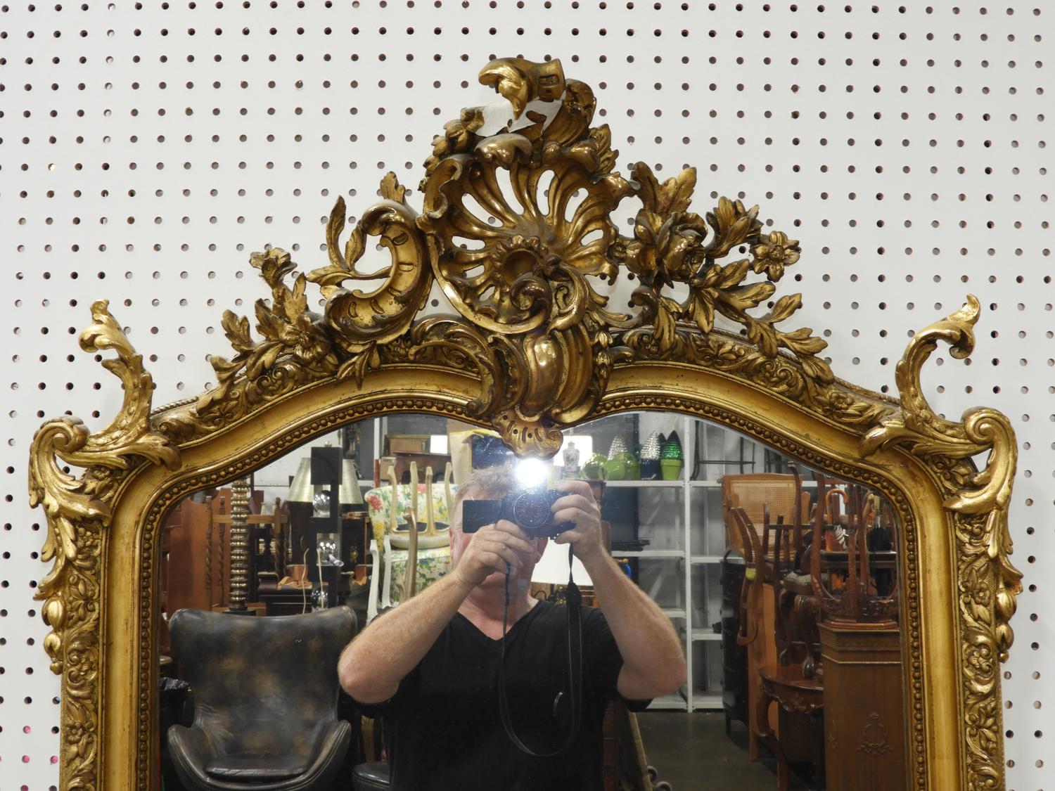 19th century rococo style gilt gesso wall mirror, requires restoration, 60" x 34"