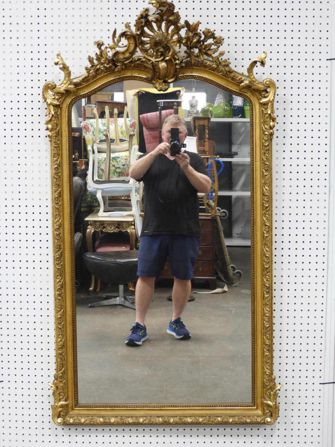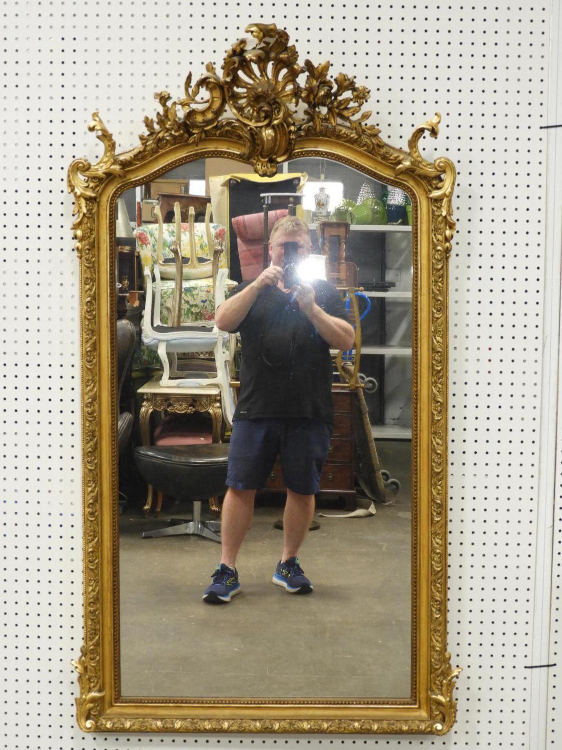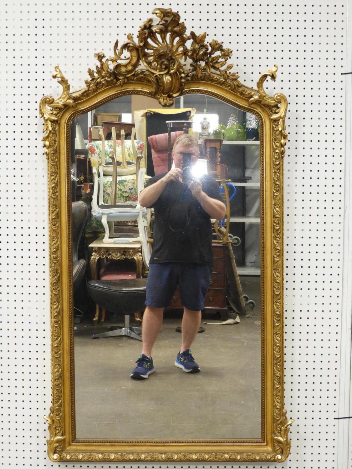 19th century rococo style gilt gesso wall mirror, requires restoration, 60" x 34"