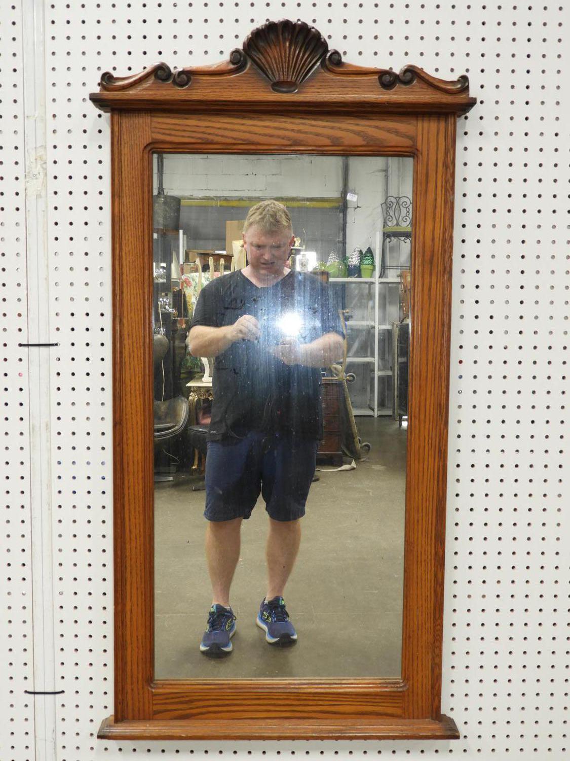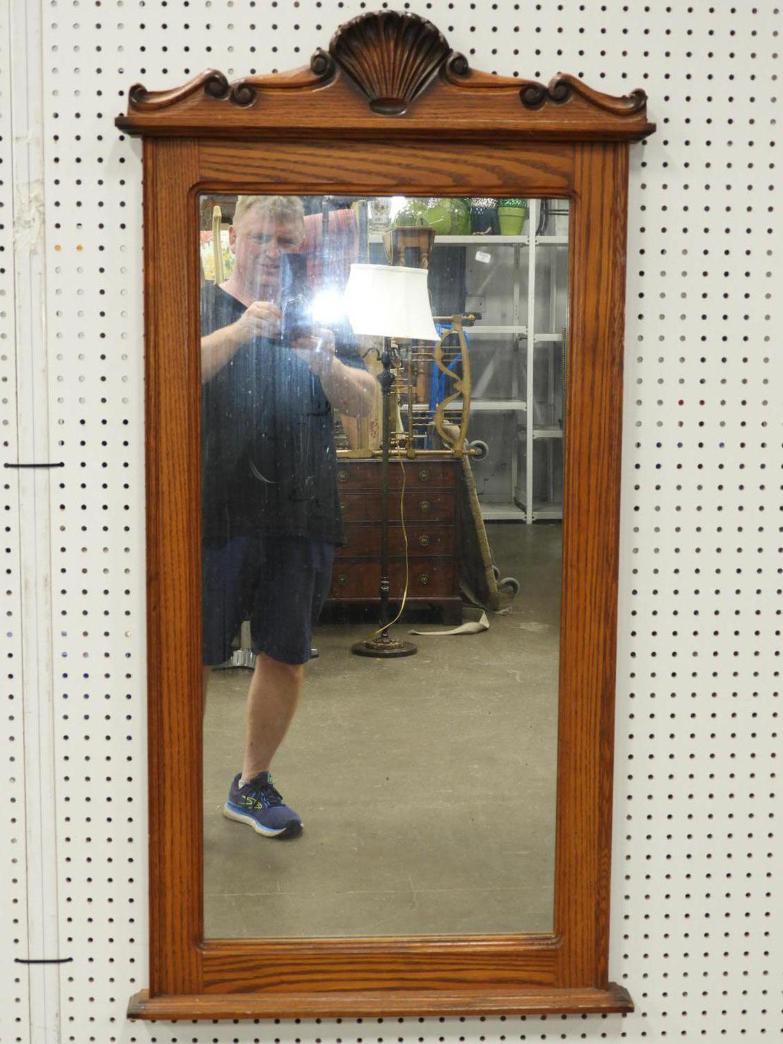 oak framed wall mirror, mid 20th century, 47" x 24'
