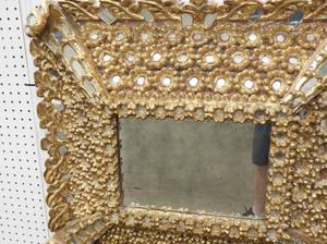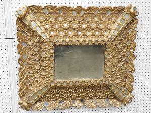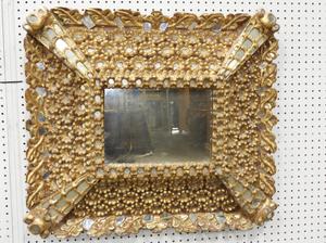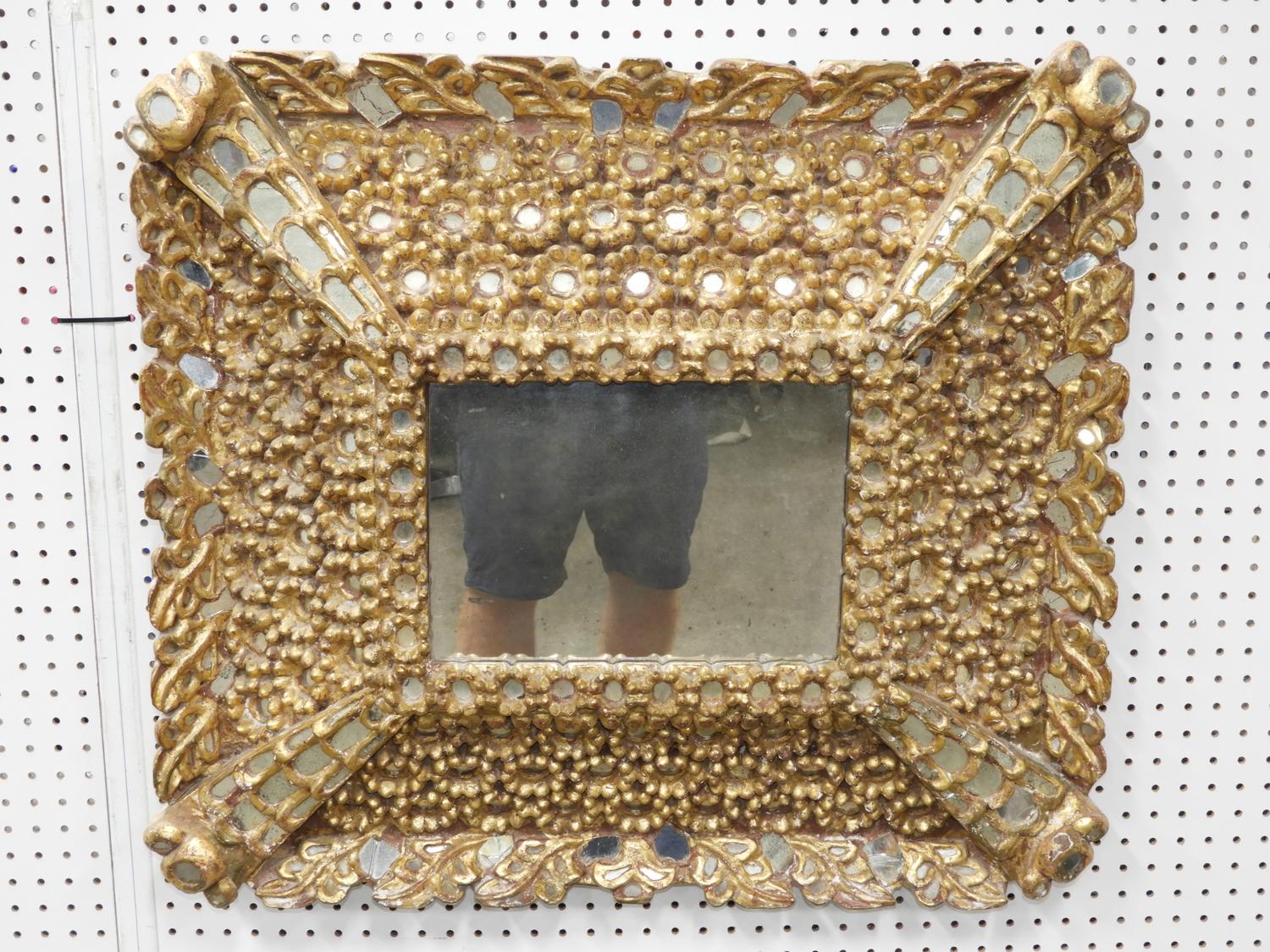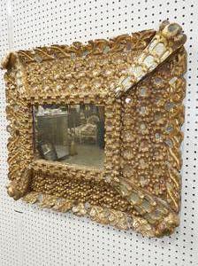 19th century baroque style gilded and painted mirror, 28" x 32" x 6"