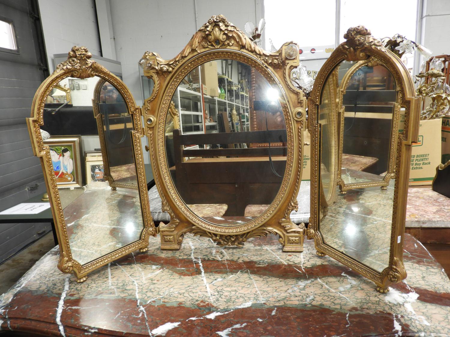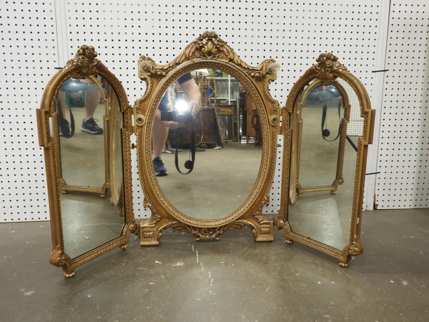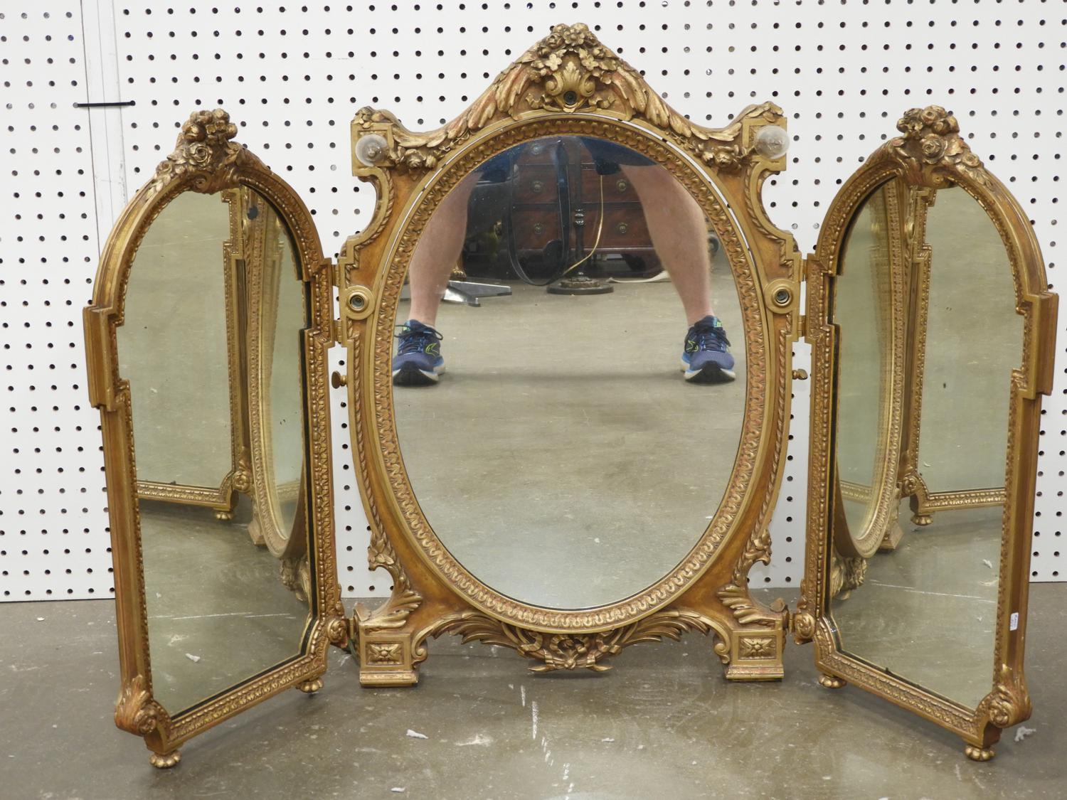 giltwood tri-part illuminated vanity mirror, c.1920, 18" x 40" x 2 1/2"