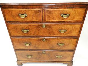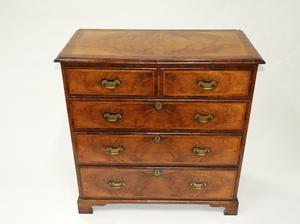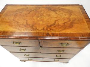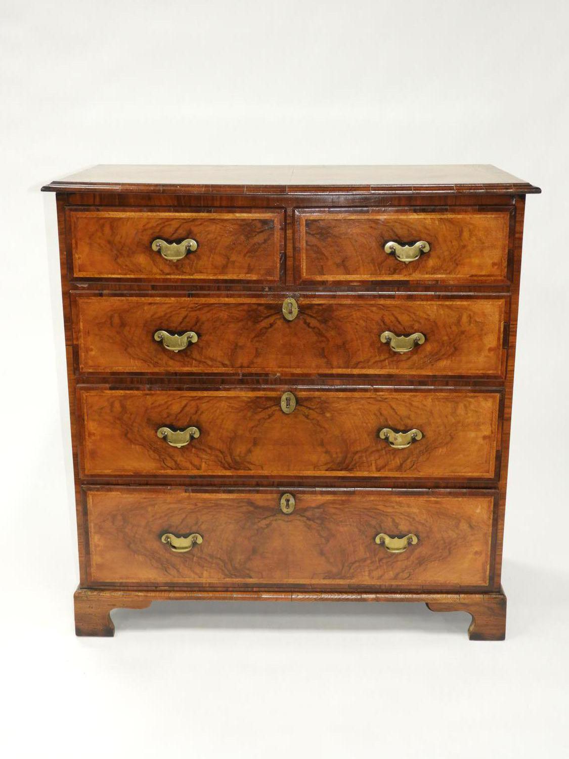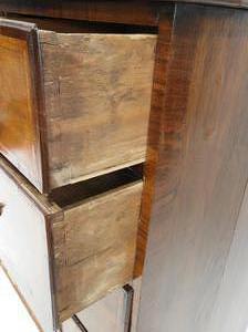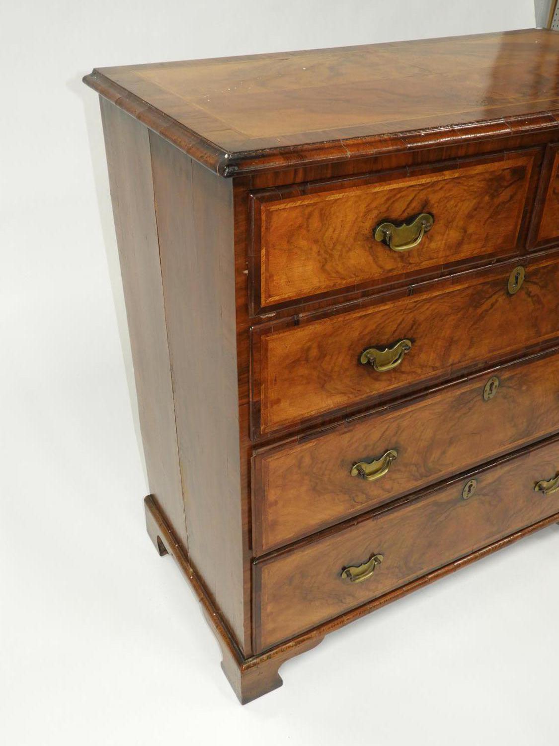 19th century inlaid walnut chest of drawers, 39" x 38" x 19 1/2"