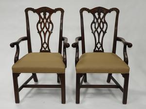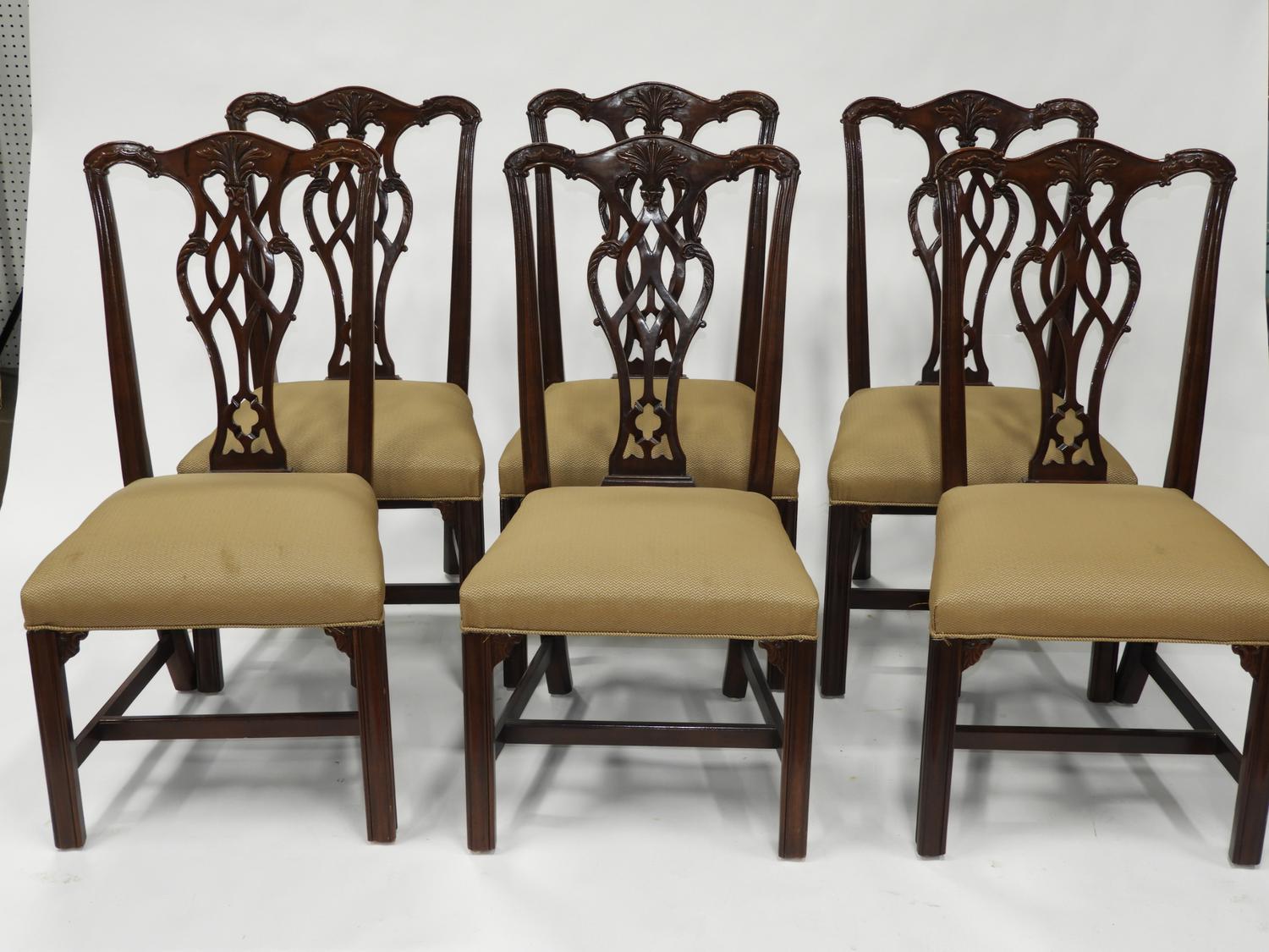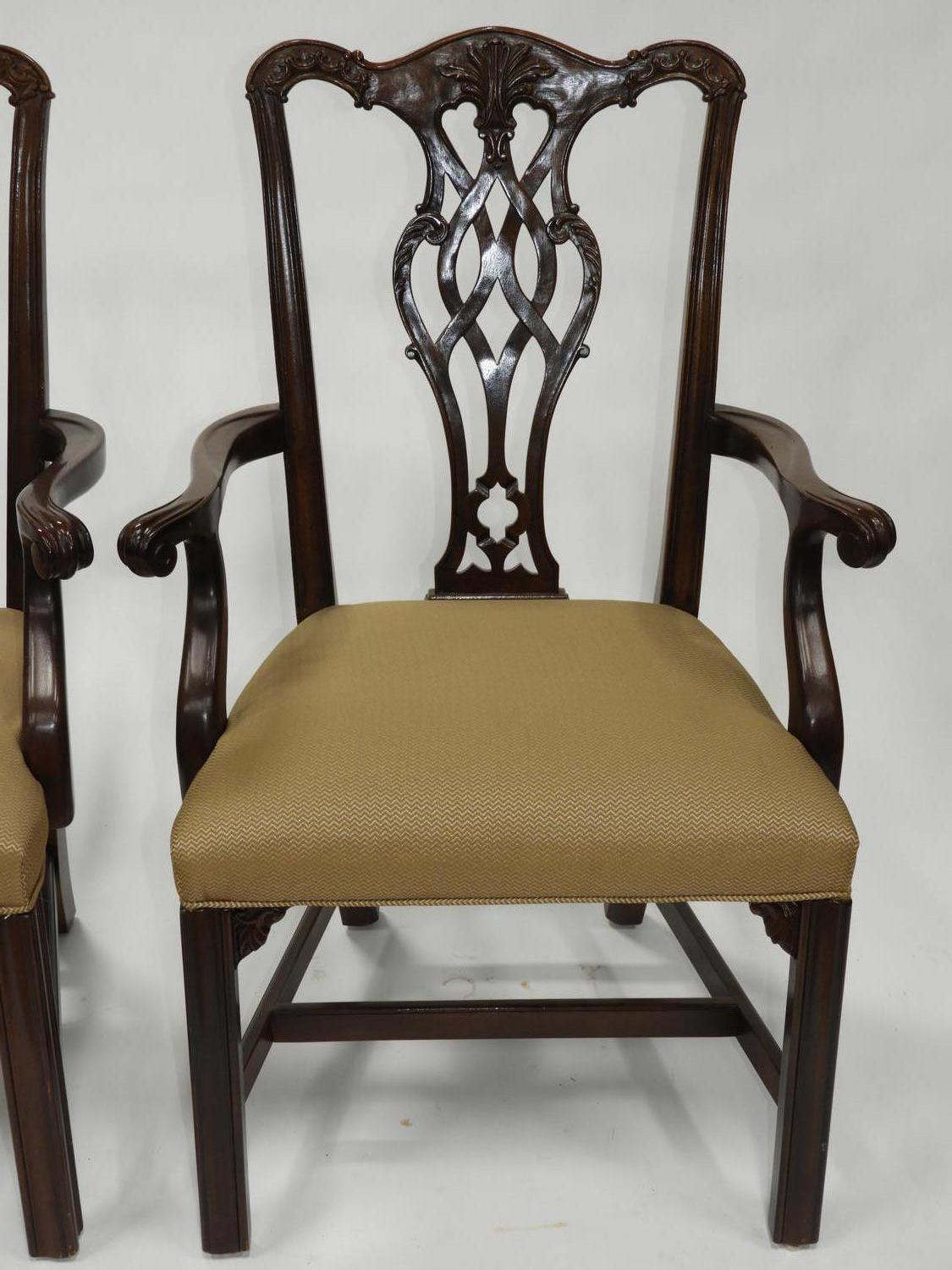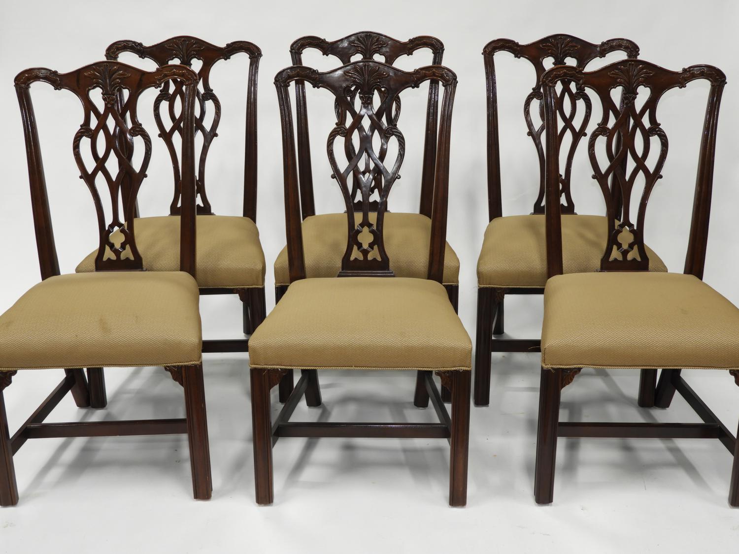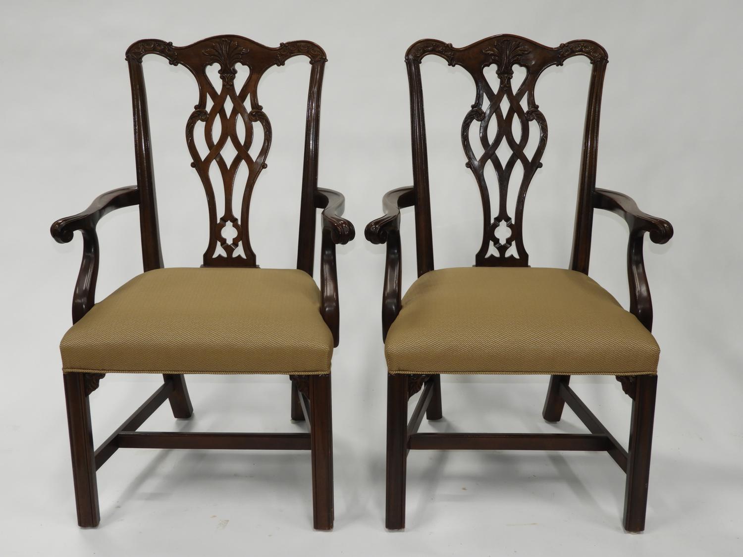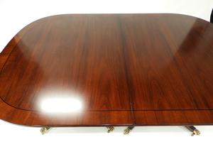 george iii style mahogany double pedestal dining table with three extension leaves by guildhall together with a set of eight mahogany chairs, table 29" x 120" x 44"