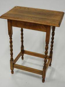 oak side table with turned supports, late 19th century, 29 1/2" x 27 3/4" x 15 1/4"