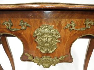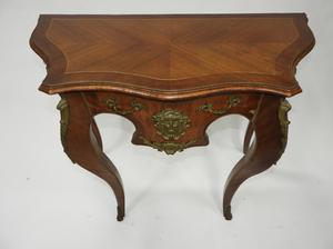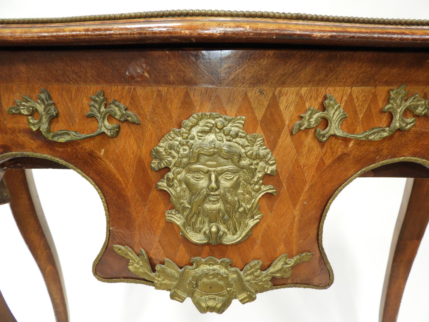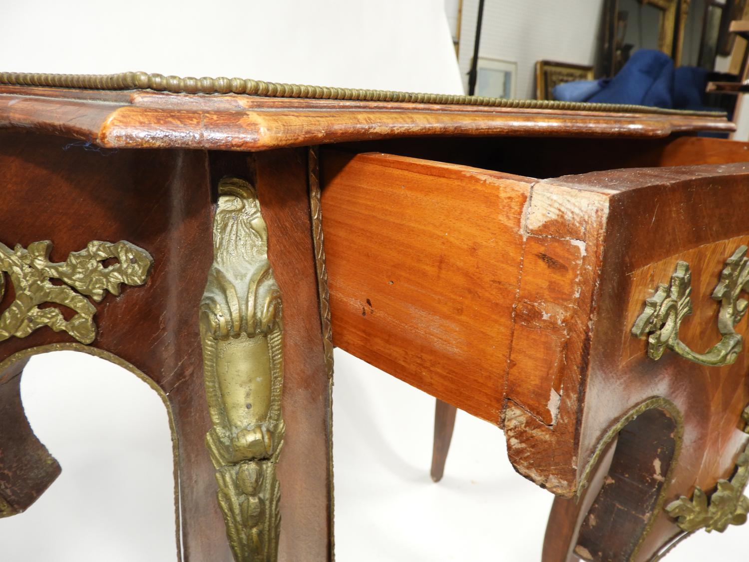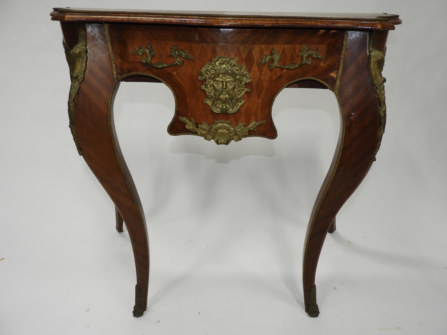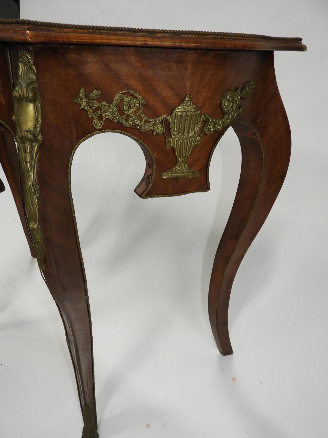 louis xv-style parquetry inlaid gilt mounted console table, mid 20th century, 33" x 40" x 20"