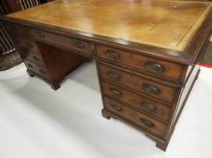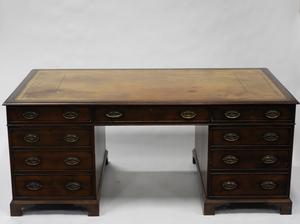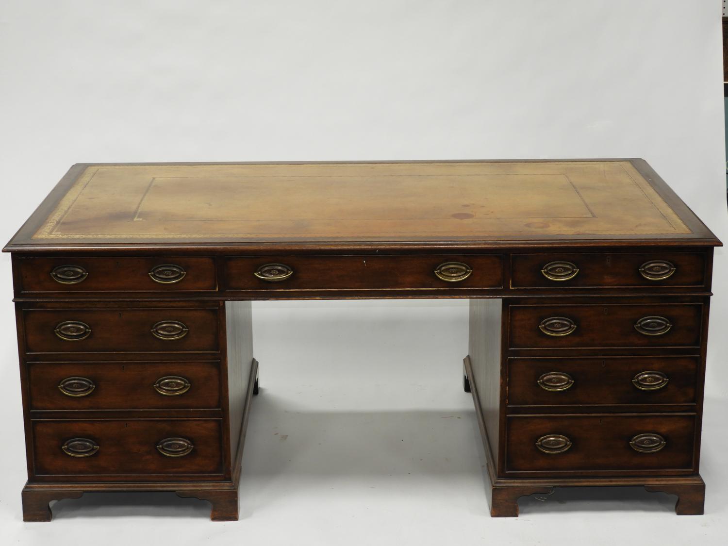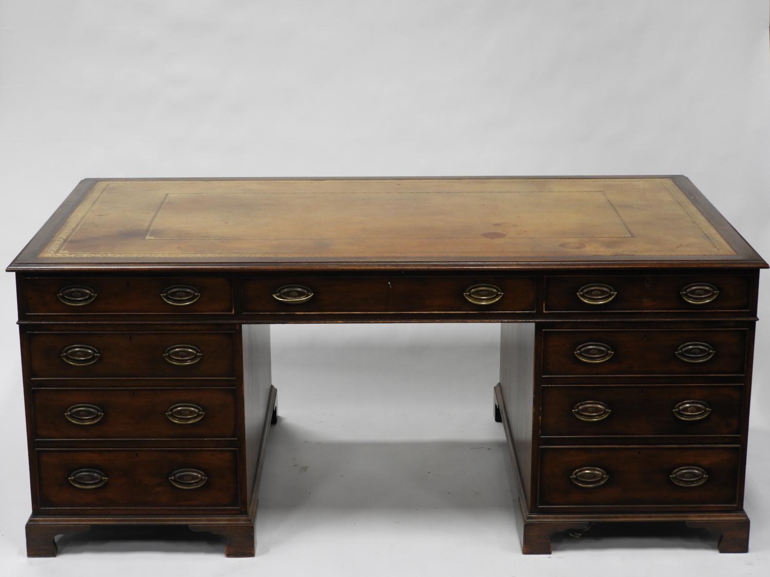 george iii mahogany double pedestal partners desk with inset leather top, early 20th century, 30" x 72" x 40"