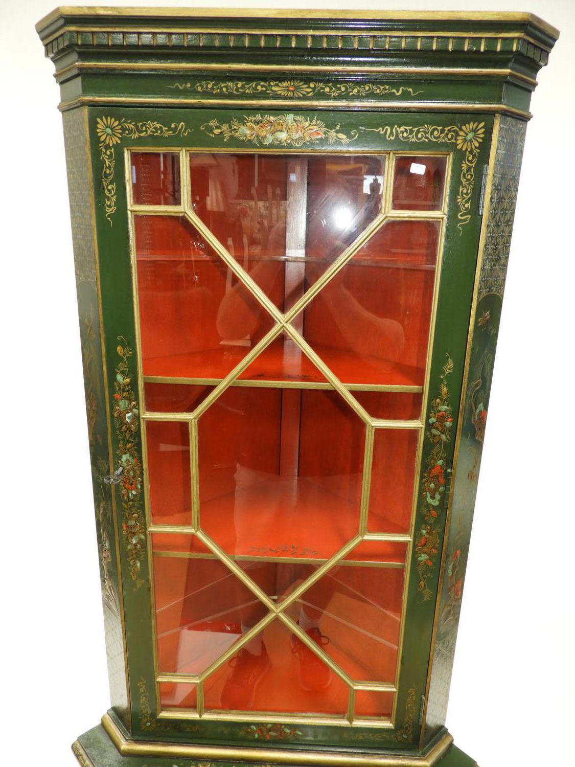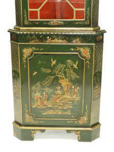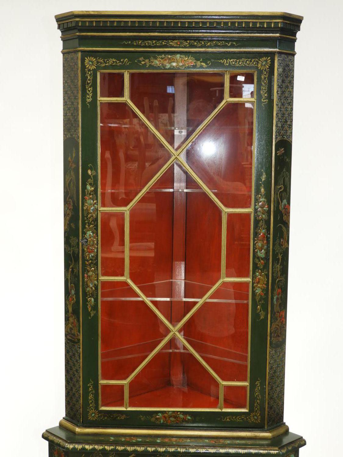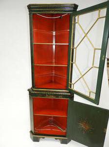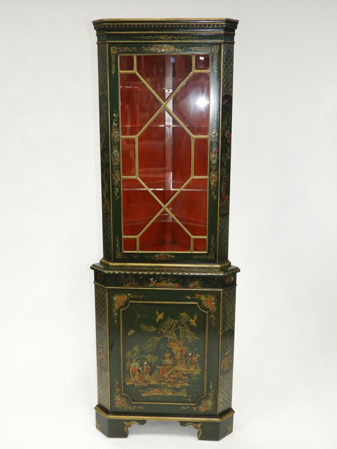 chinoiserie lacquered corner cabinet, mid 20th century, 70 1/2" x 25" x 16"