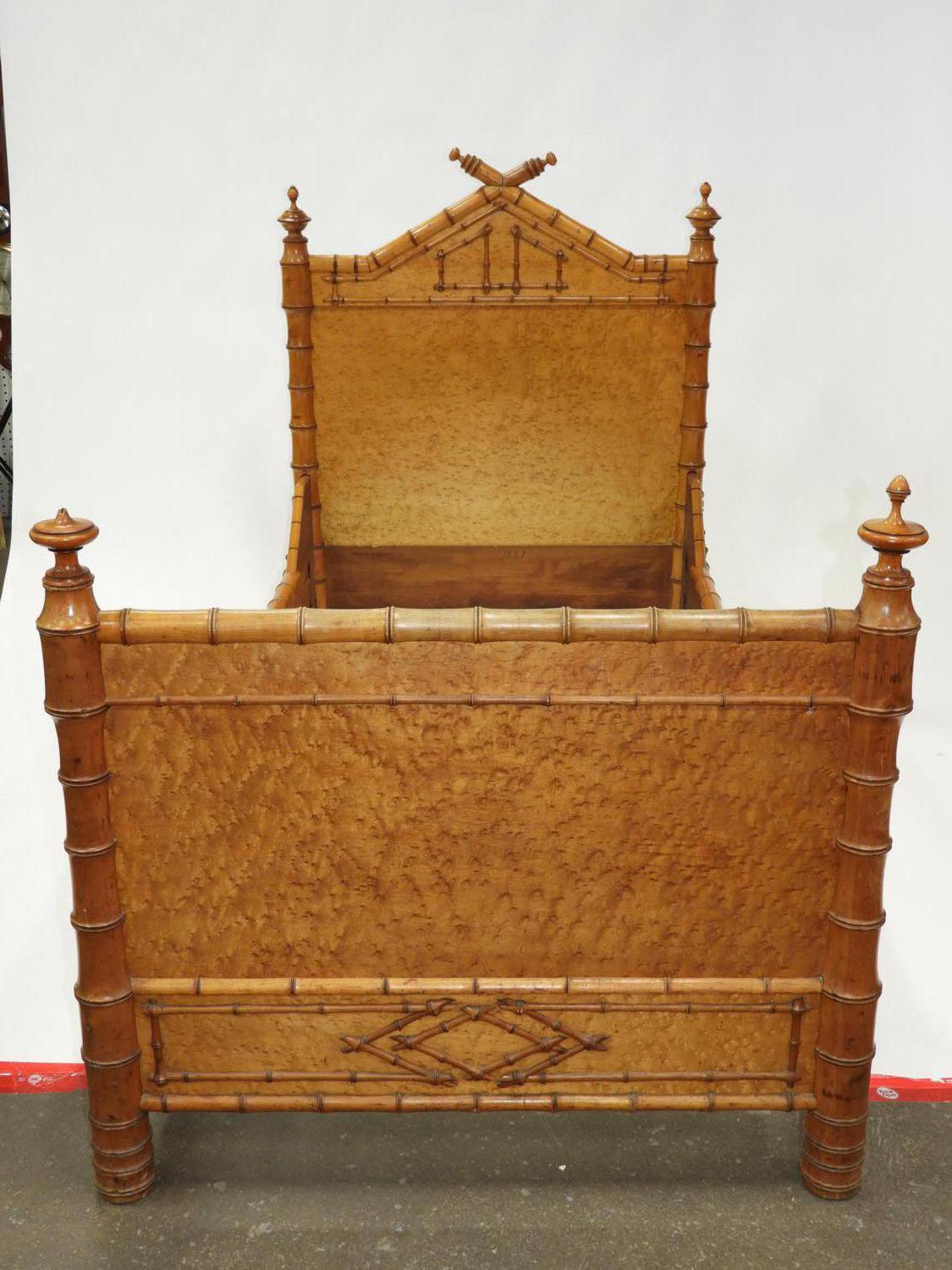 19th century french faux bamboo bed, 48" x 76" x 40"