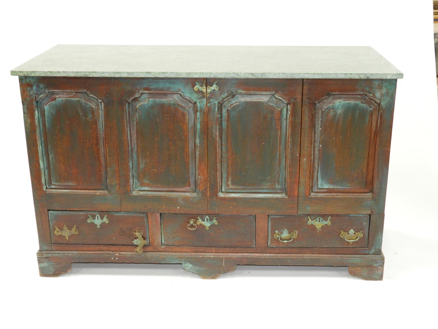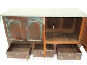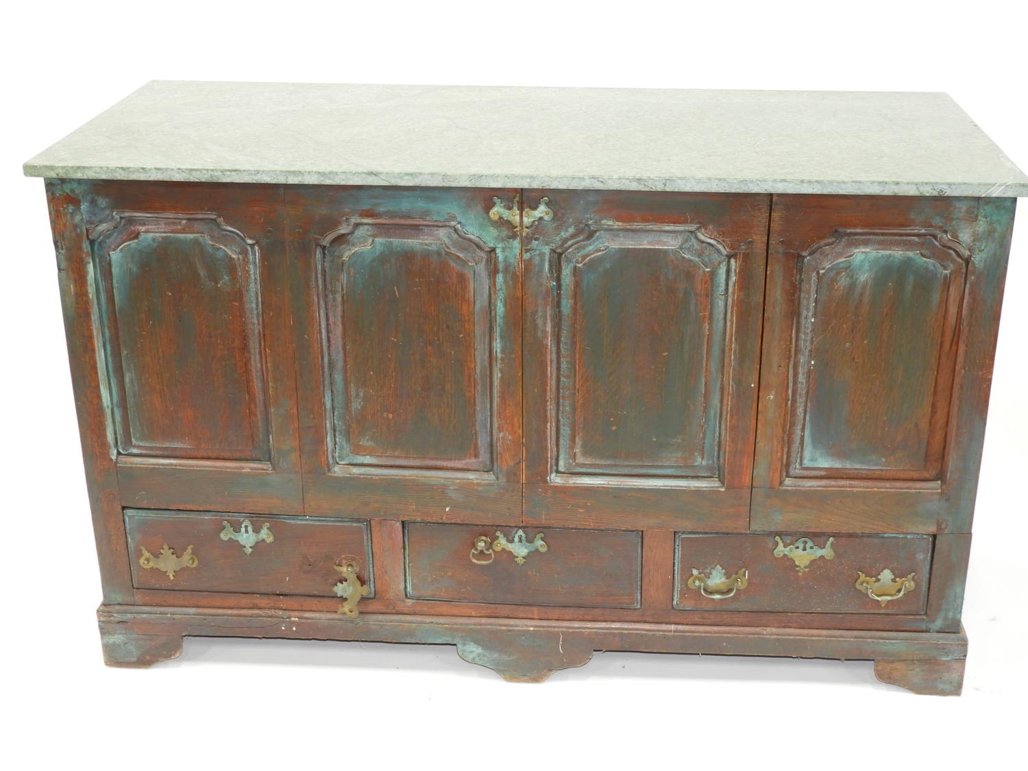 oak mule chest with marble top, 18th century with alterations, 34" x 57" x 24"