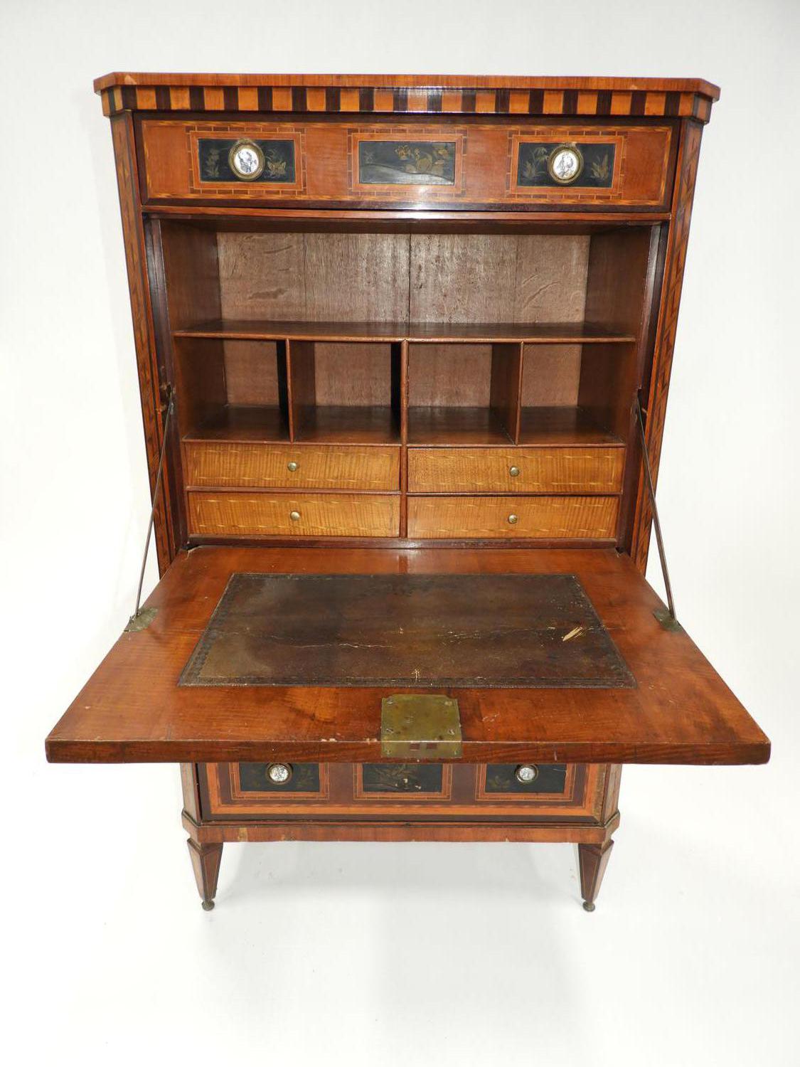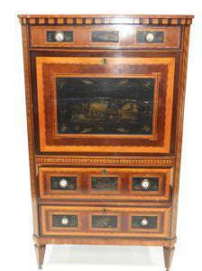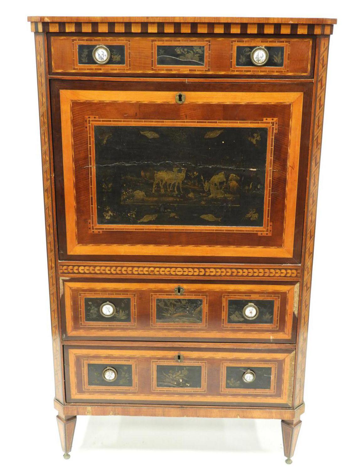 early 19th century french empire painted and inlaid mahogany escritoire, 57 1/4" x 34" x 17"